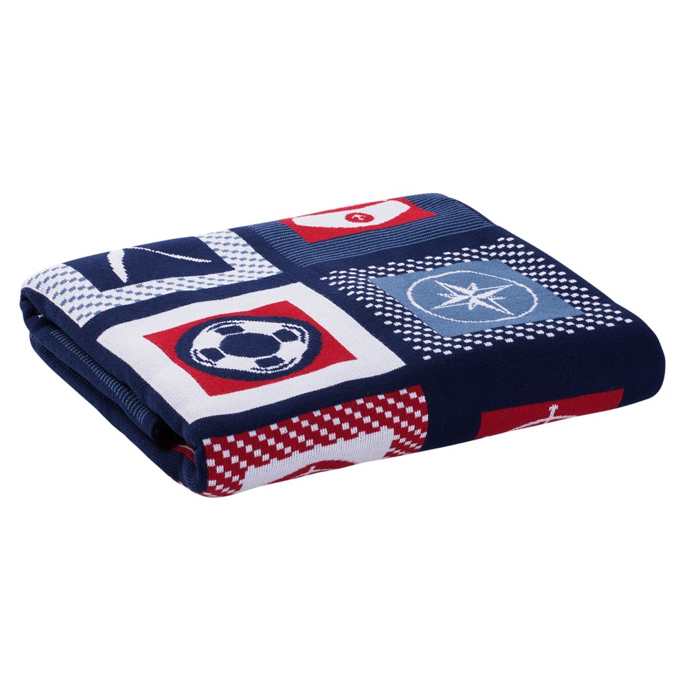 В каждой части общего рисунка жаккардового пледа изображены главные морские символы.