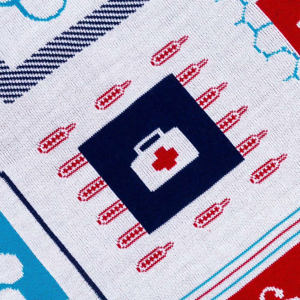 В каждой части общего рисунка, напоминающего лоскутное шитье, в самых теплых красках изображены главные медицинские символы.