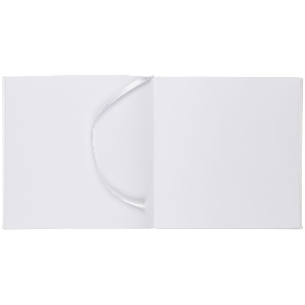Скетчбук с твердой обложкой выполнен из материала Soft Touch, белый ВВ, дополнен ляссе в цвет обложки.