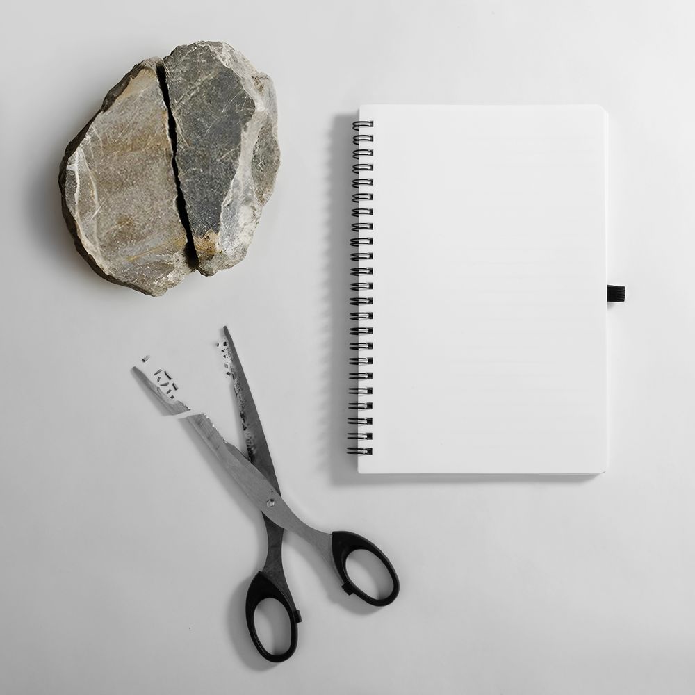 Блокнот из каменной бумаги на пружине с резинкой для ручки.