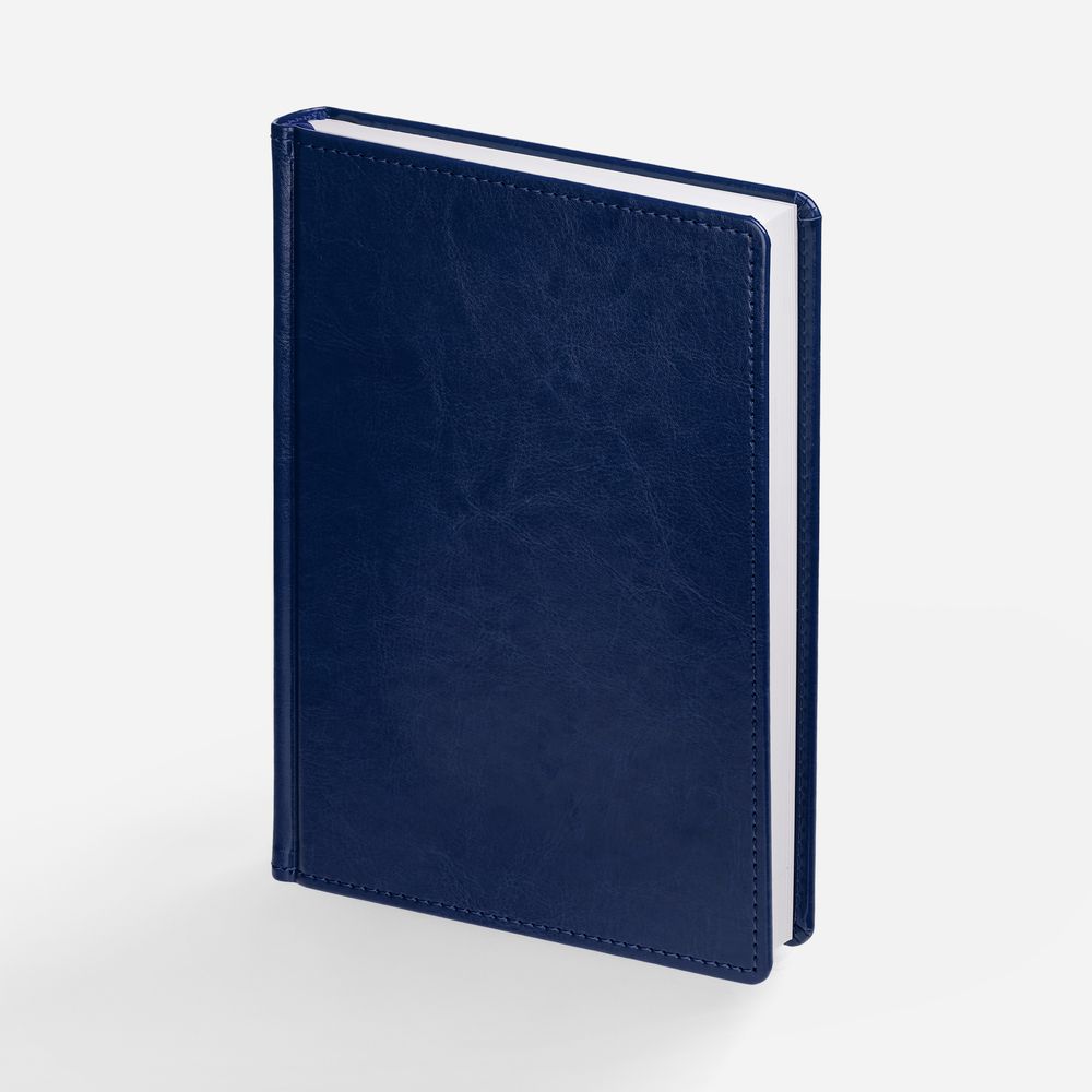 Ежедневник с твердой обложкой без поролона, выполнен из материала Nebraska, синий НН, дополнен ляссе и капталом в цвет обложки.