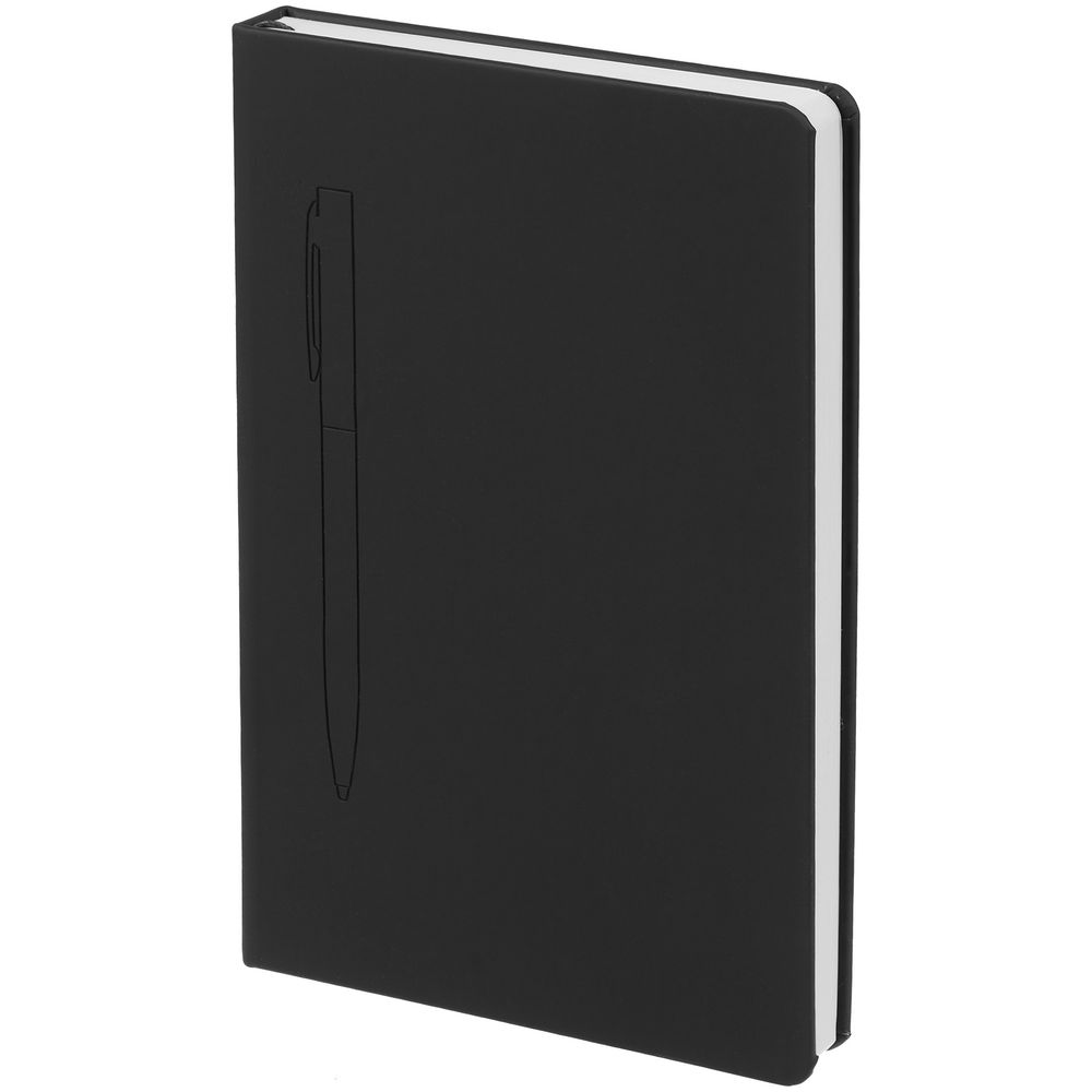 Ежедневник в твердой обложке, выполненной из материала Soft Touch Pearl, черный АА, дополнен цветным ляссе и магнитом, удерживающим ручку.