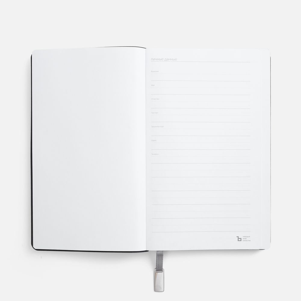 Ежедневник с гибкой обложкой, выполнен из материала Petrus, синий НН, дополнен серым ляссе с металлическим шильдиком.