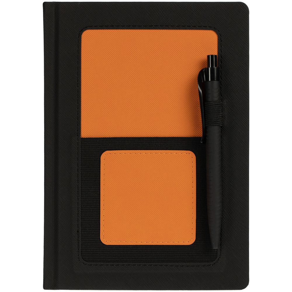 Твердая обложка выполнена из материалов Nice Touch, черный АА, и Canyon, оранжевый ОО. Ежедневник дополнен капталом, резинкой для ручки и ляссе черного цвета.