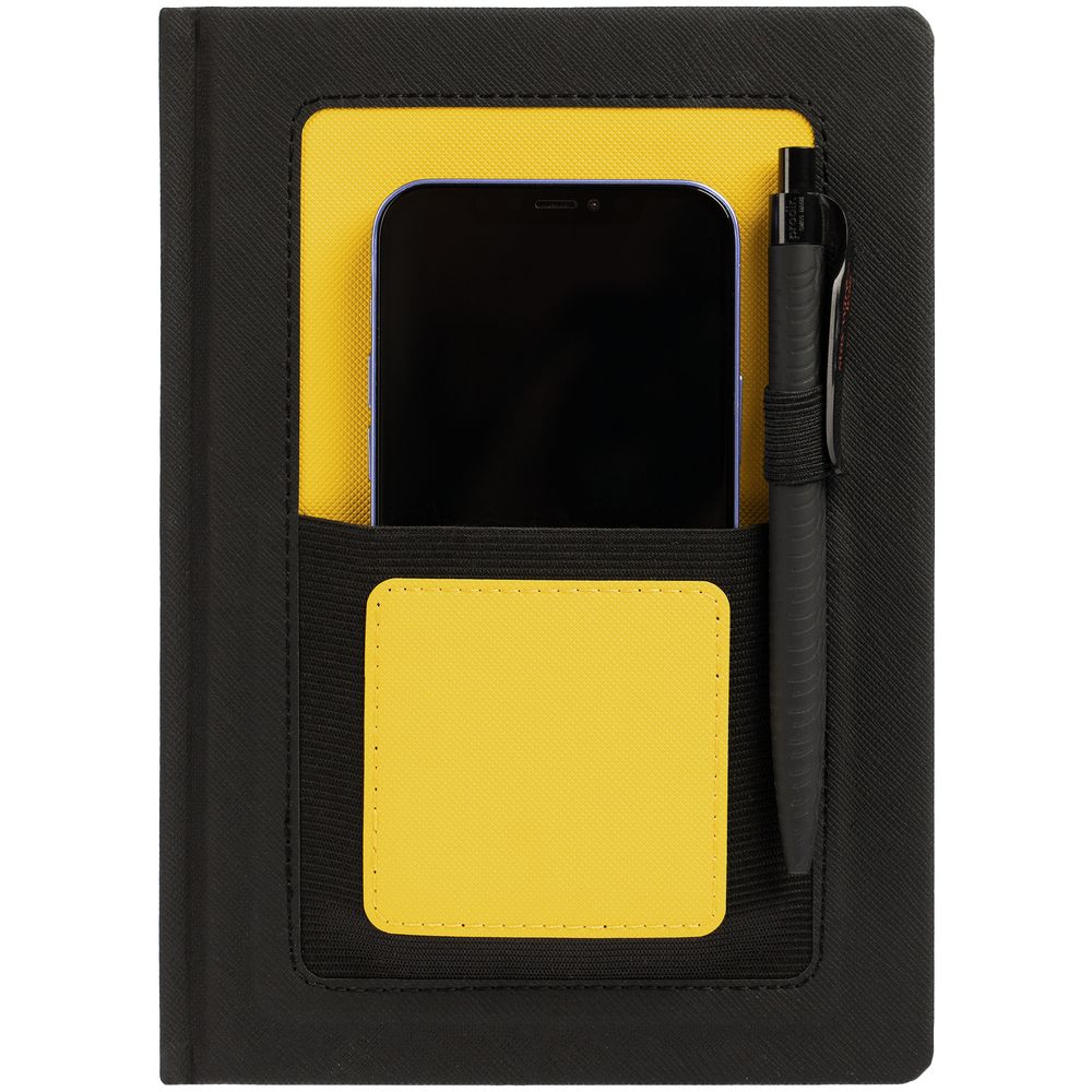 Ежедневник с карманом шириной 10 см из резинки, в котором удобно разместить мобильный телефон или визитки для переговоров.