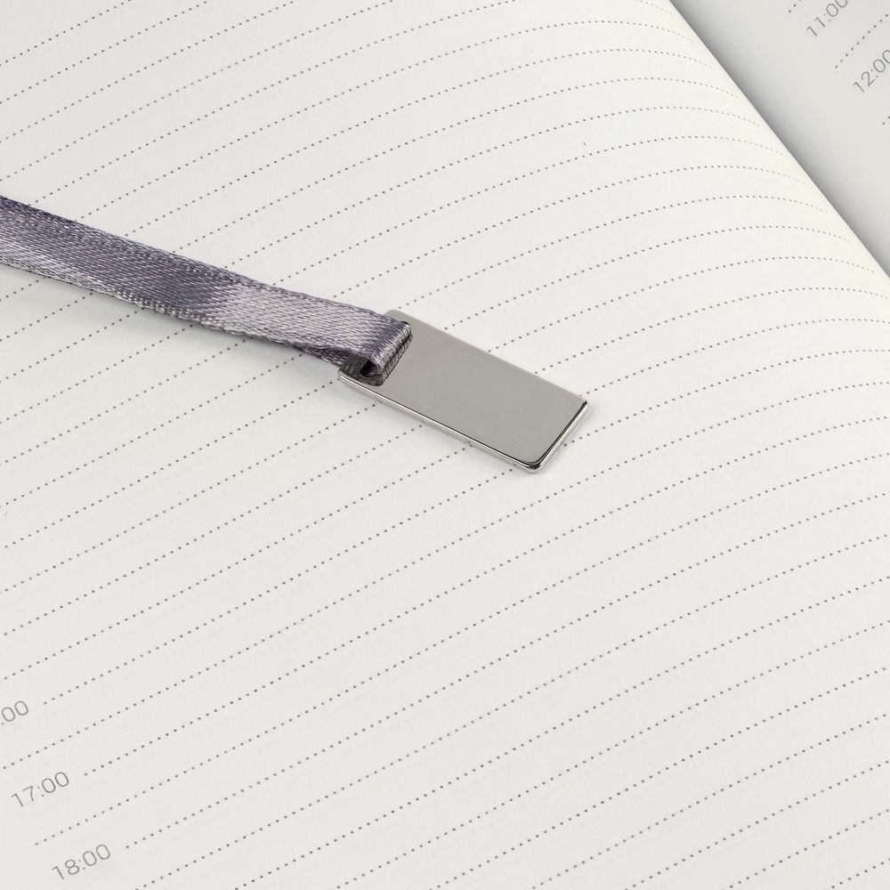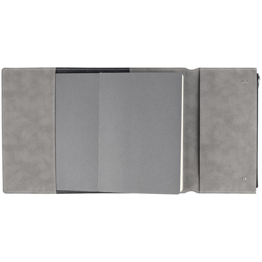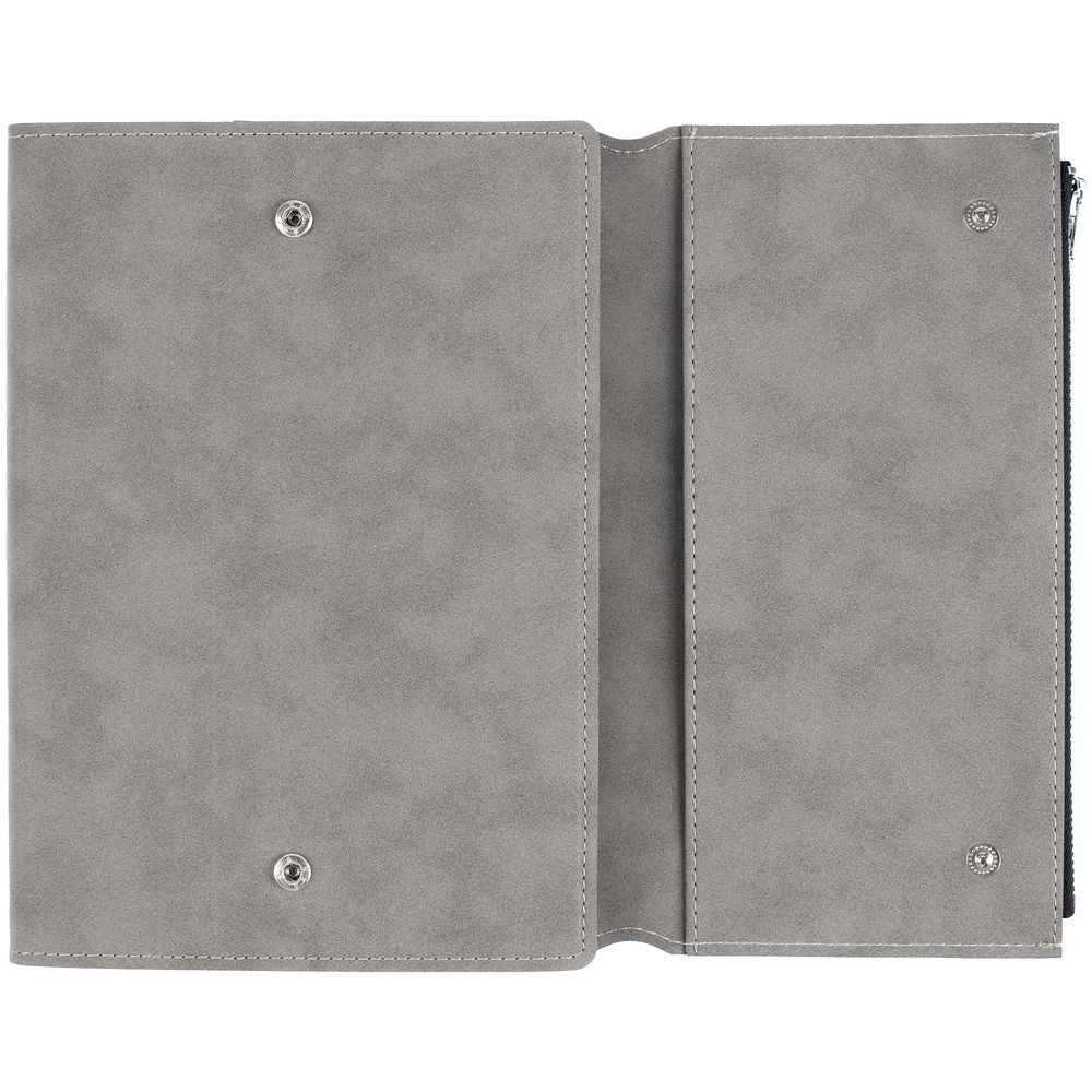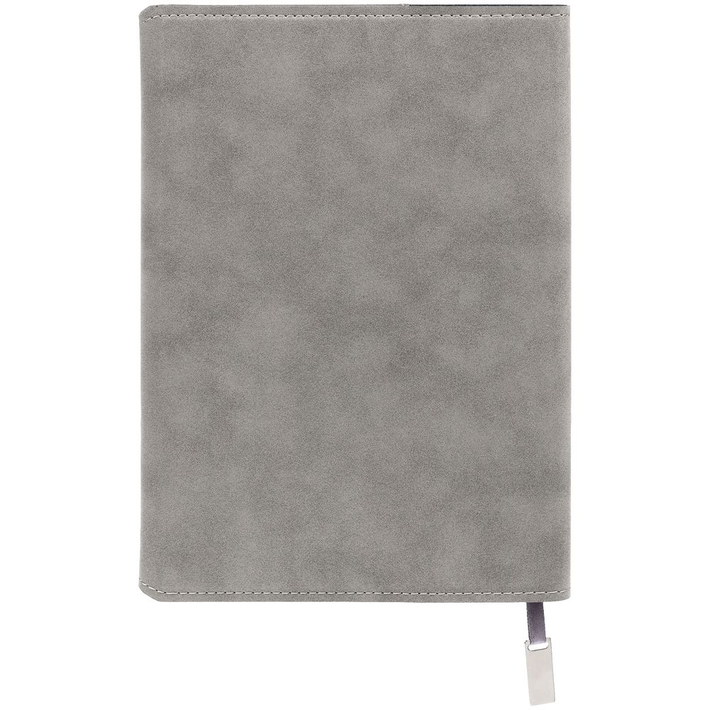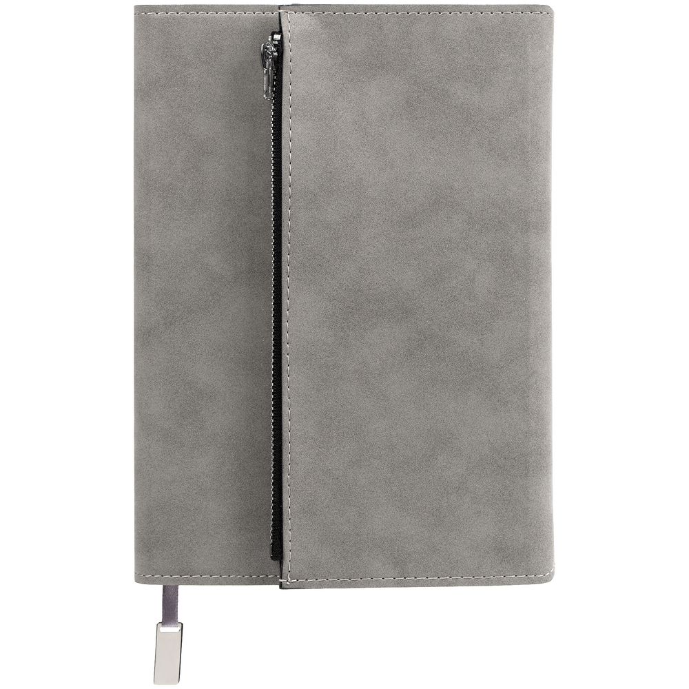 Ежедневник в гибкой суперобложке c карманом на молнии, выполнен из материала Nubuck, серый СС. Дополнен капталом и металлической шильдой на ляссе серого цвета.