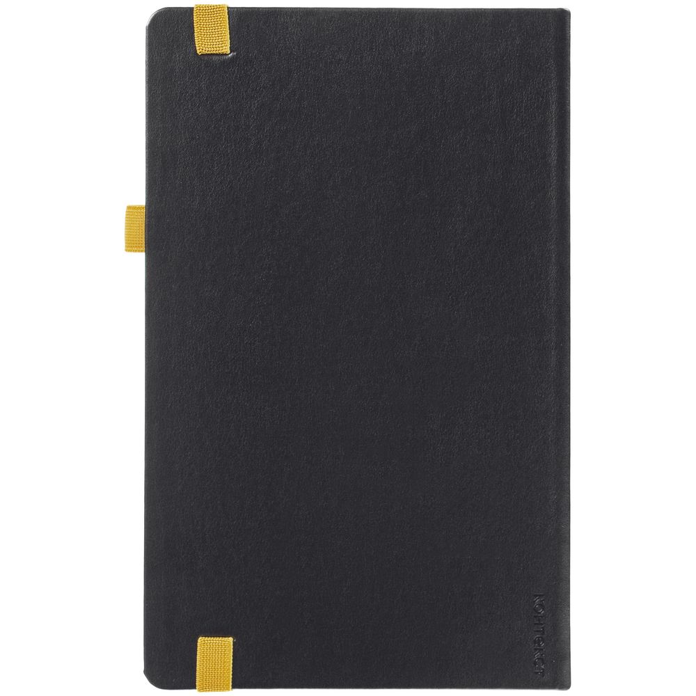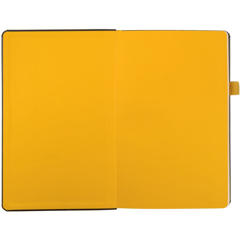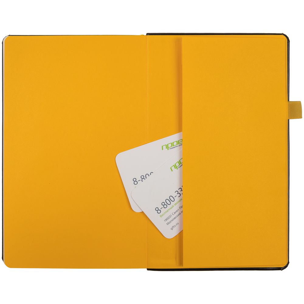 Ежедневник с твердой обложкой, выполнен из материала Waltz, черный АА, дополнен желтой резинкой и ляссе.
