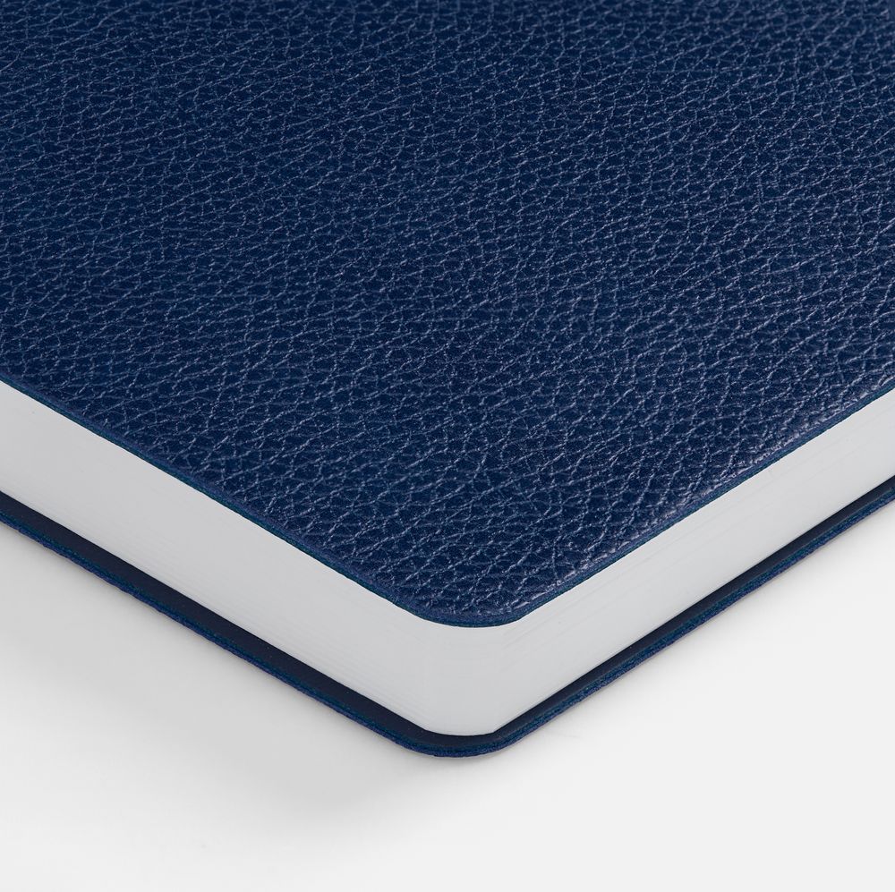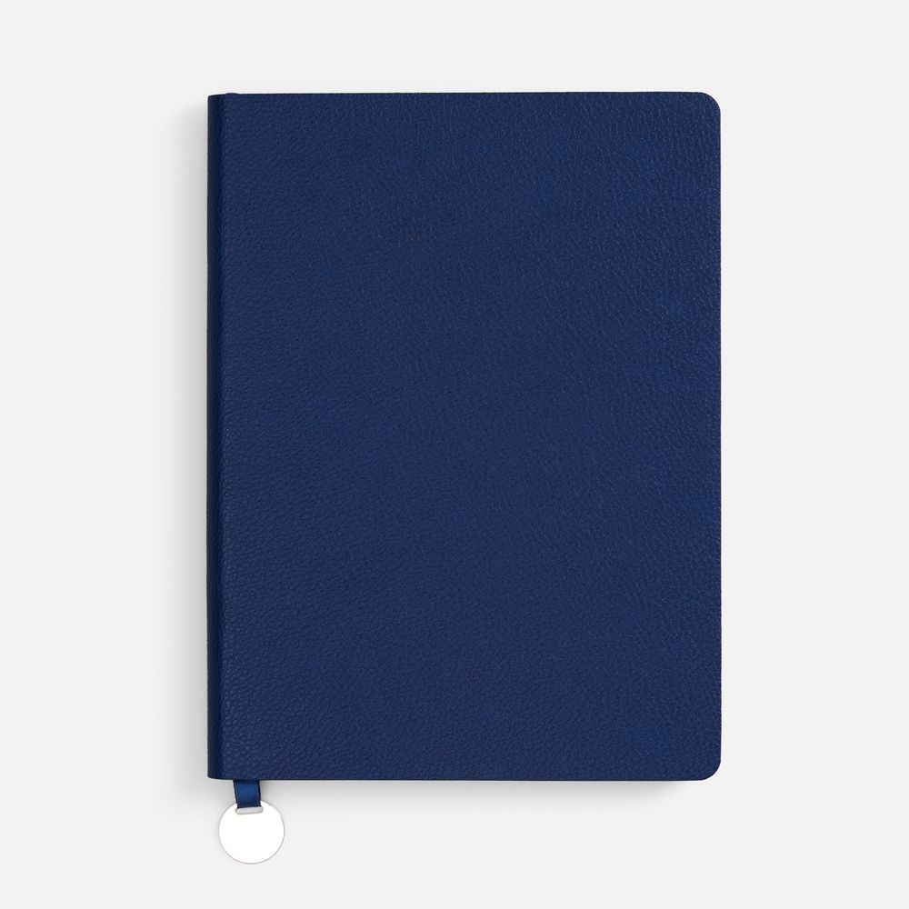 Ежедневник с гибкой обложкой, выполнен из материал La Fite, синий НН, дополнен ляссе в цвет обложки с металлическим шильдом.