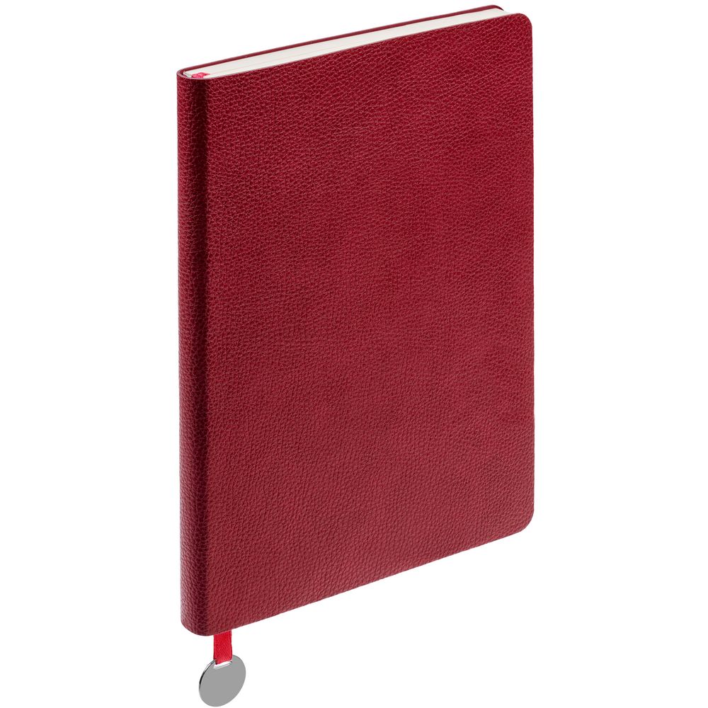 Ежедневник с гибкой обложкой, выполнен из материал La Fite, красный РР, дополнен ляссе в цвет обложки с металлическим шильдом.