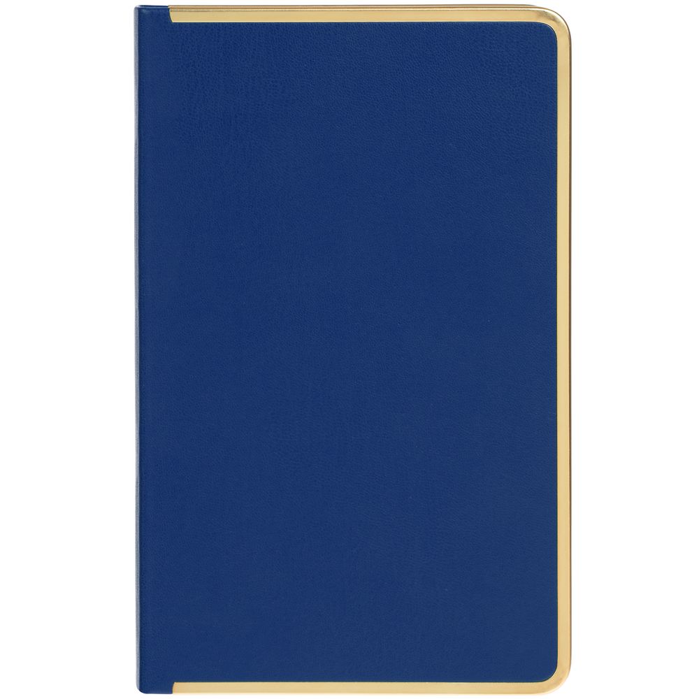 Изящный ежедневник с зауженным блоком и стильными деталями — металлической окантовкой на обложке и металлизированным обрезом.