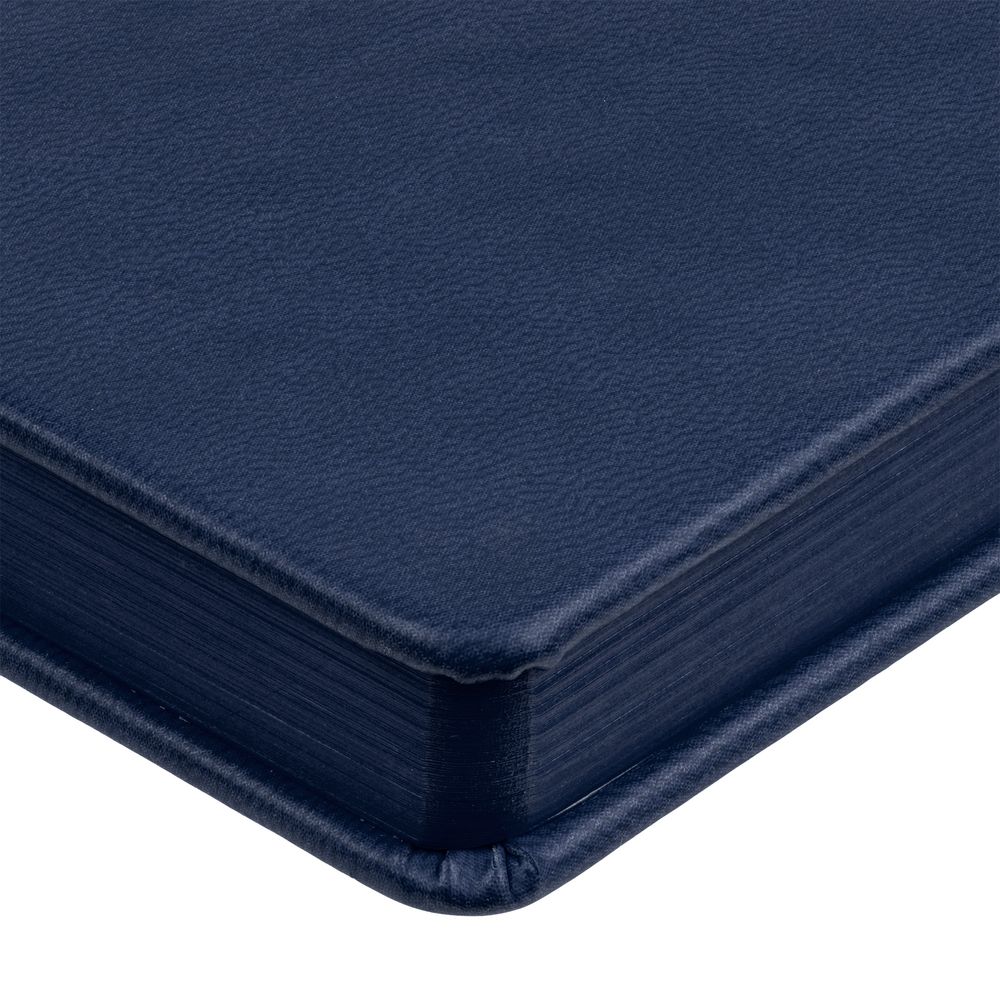 Ежедневник с твердой обложкой и тонированным обрезом. Выполнен из материала Latte, темно-синий, дополнен ляссе в цвет обложки.