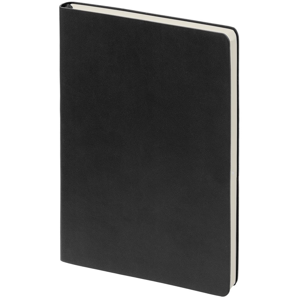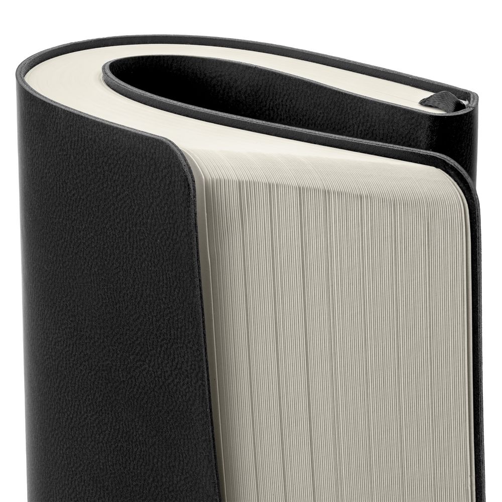 Ежедневник с гибкой обложкой, выполнен из материала Latte, черный, дополнен ляссе в цвет обложки.