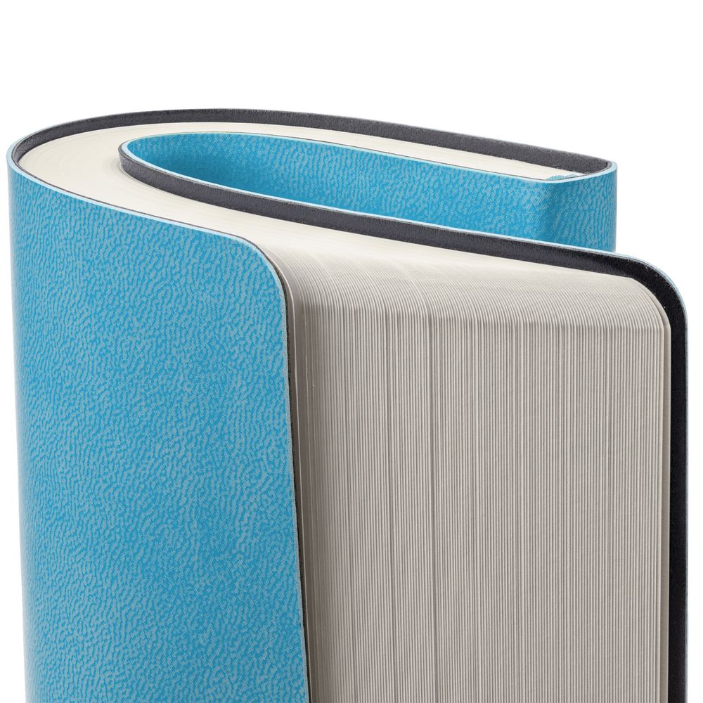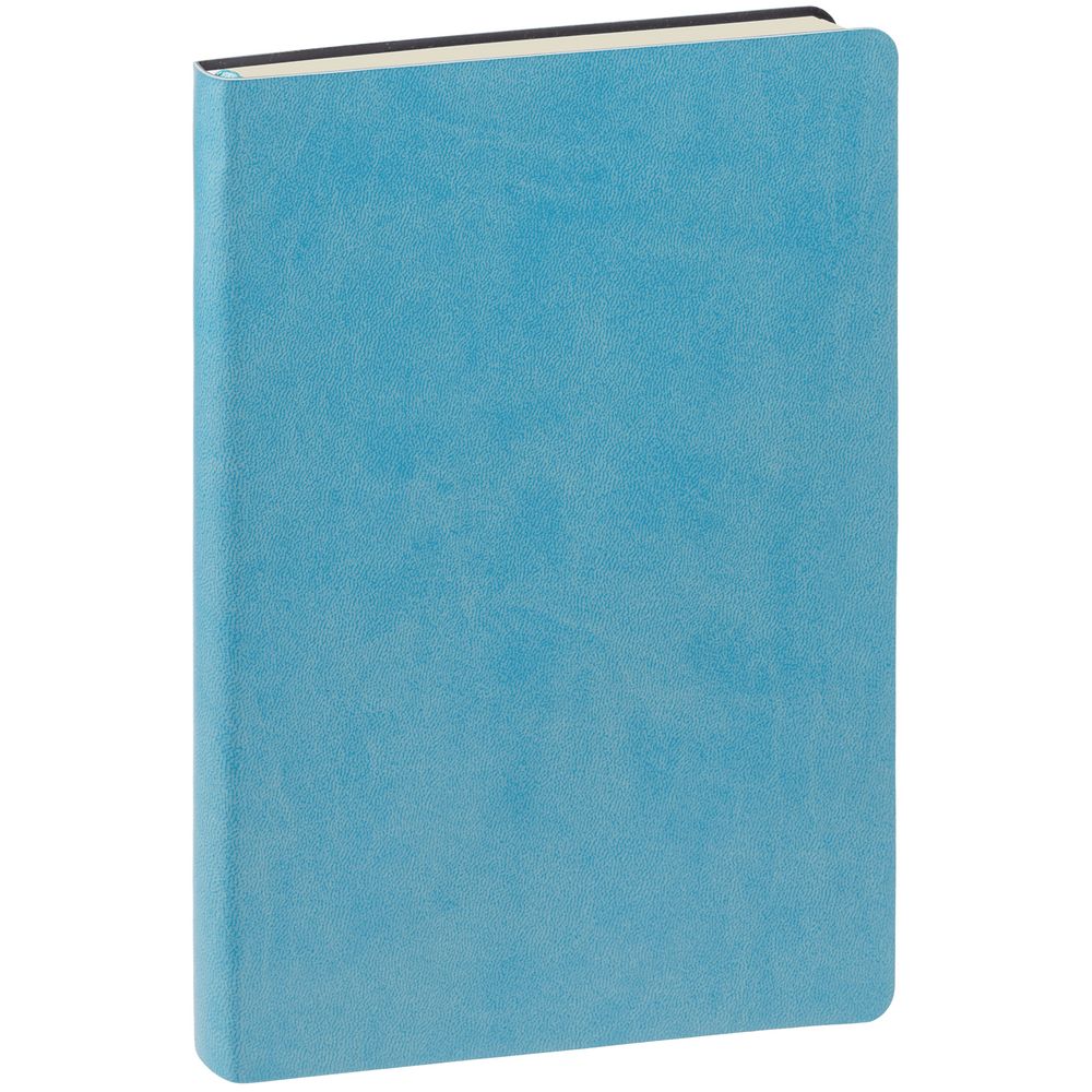 Ежедневник с гибкой обложкой, выполнен из материала Latte, голубой, дополнен ляссе в цвет обложки.