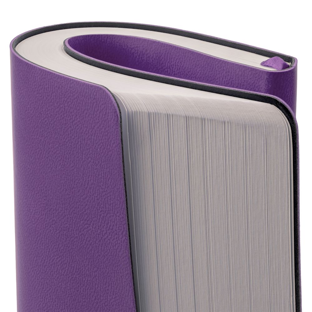 Ежедневник с гибкой обложкой, выполнен из материала Latte, фиолетовый, дополнен ляссе в цвет обложки.