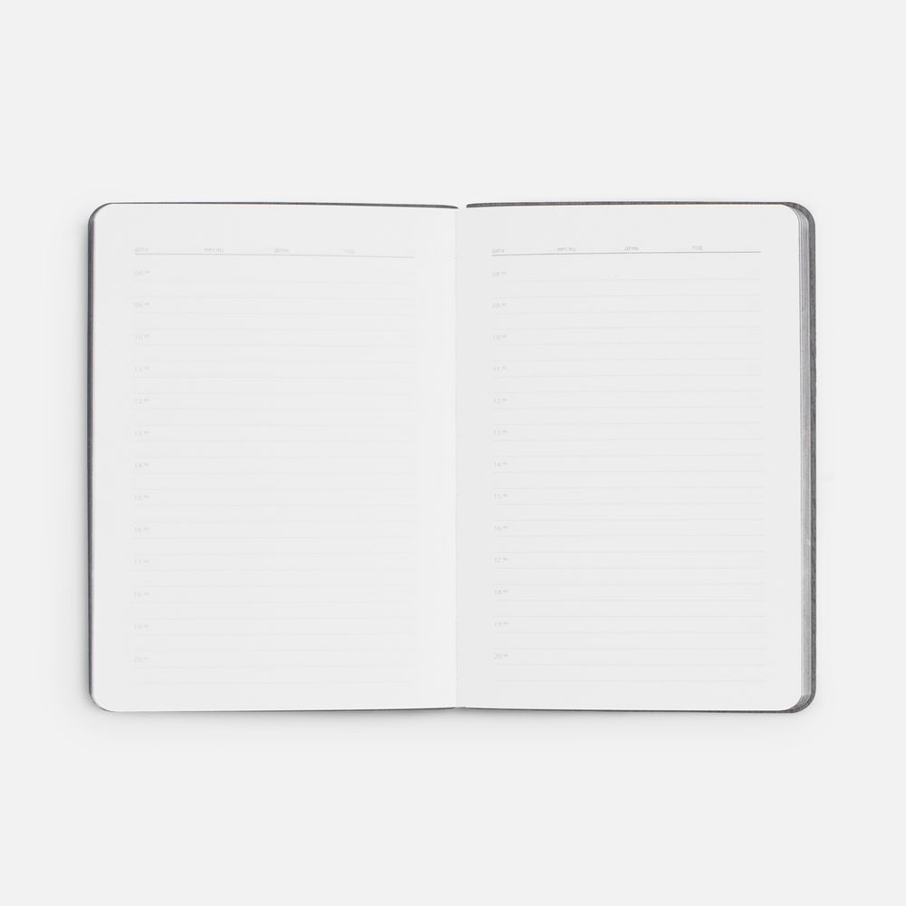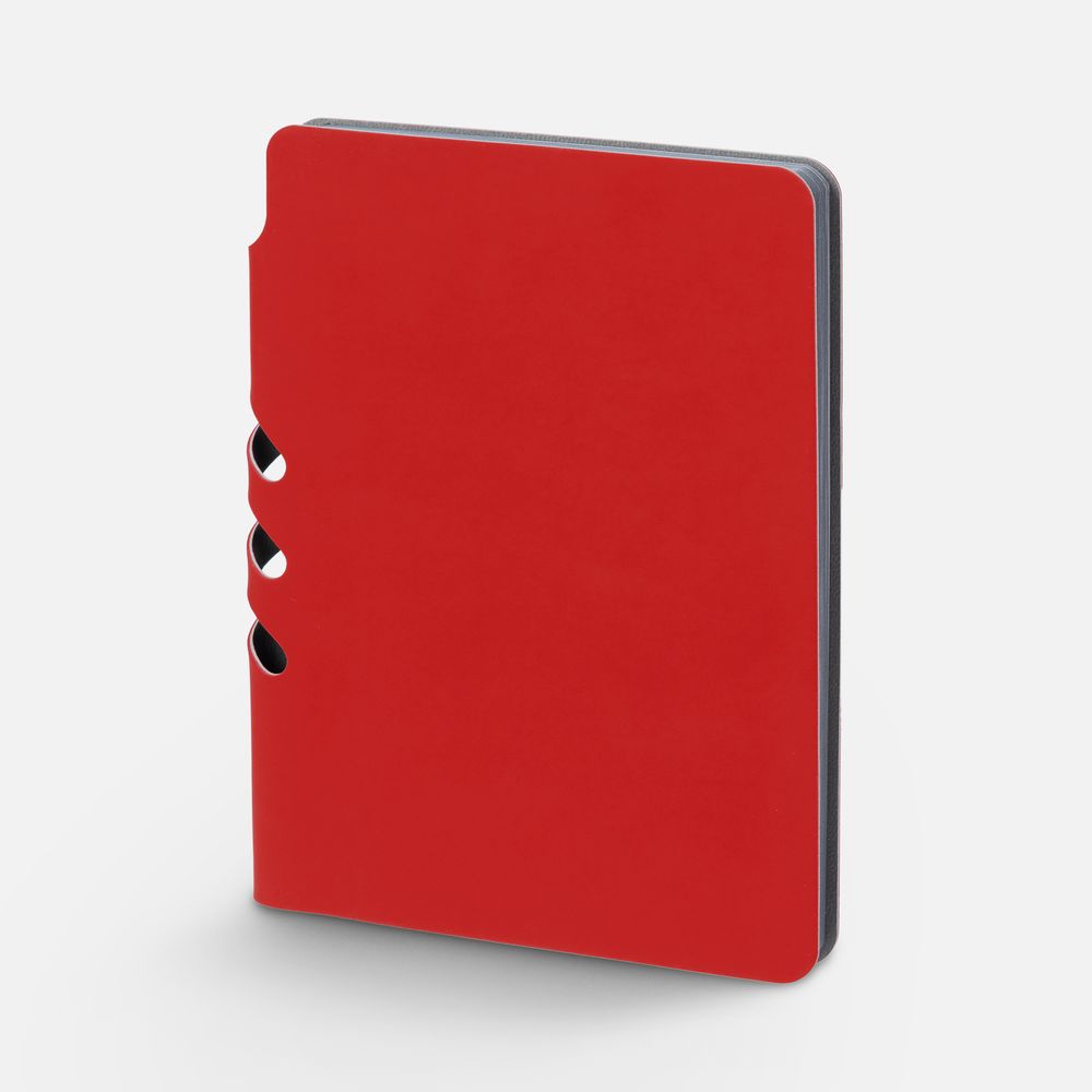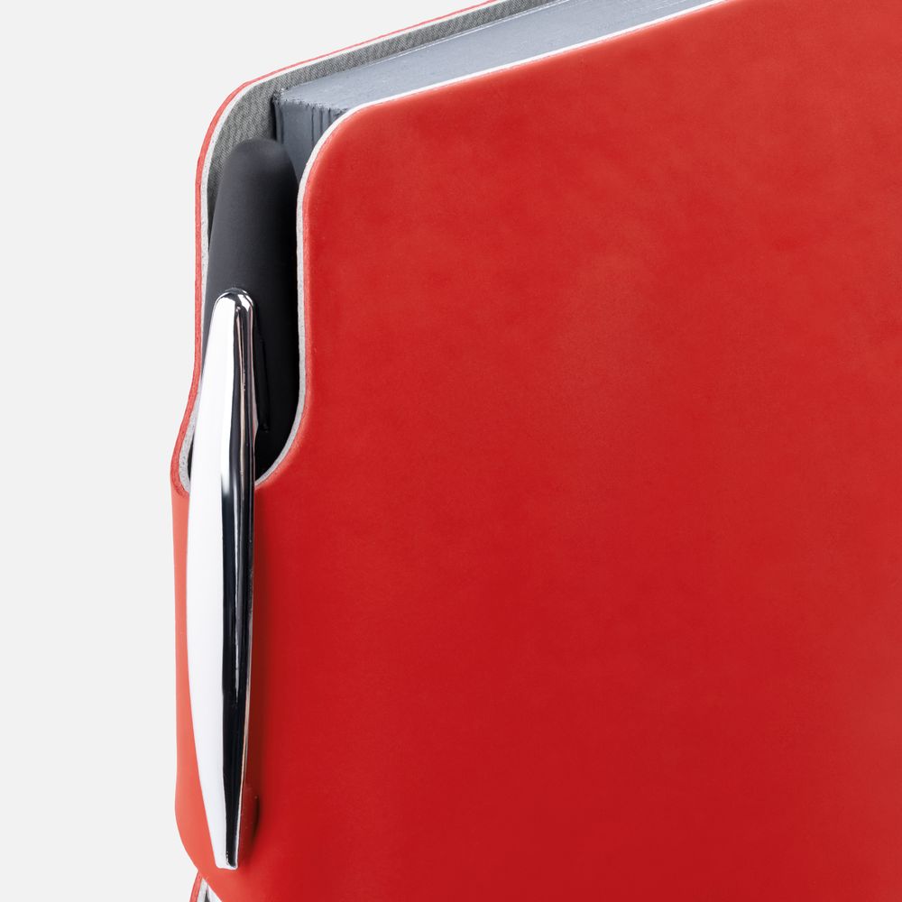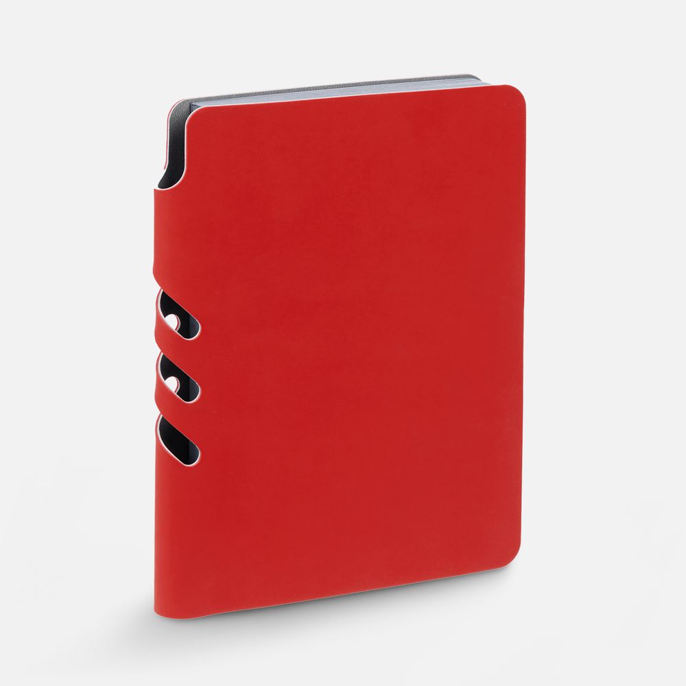 Ежедневник с гибкой обложкой выполнен из материала Soft Touch Ultra, красный РР и серого Latte (внутренняя часть обложки).