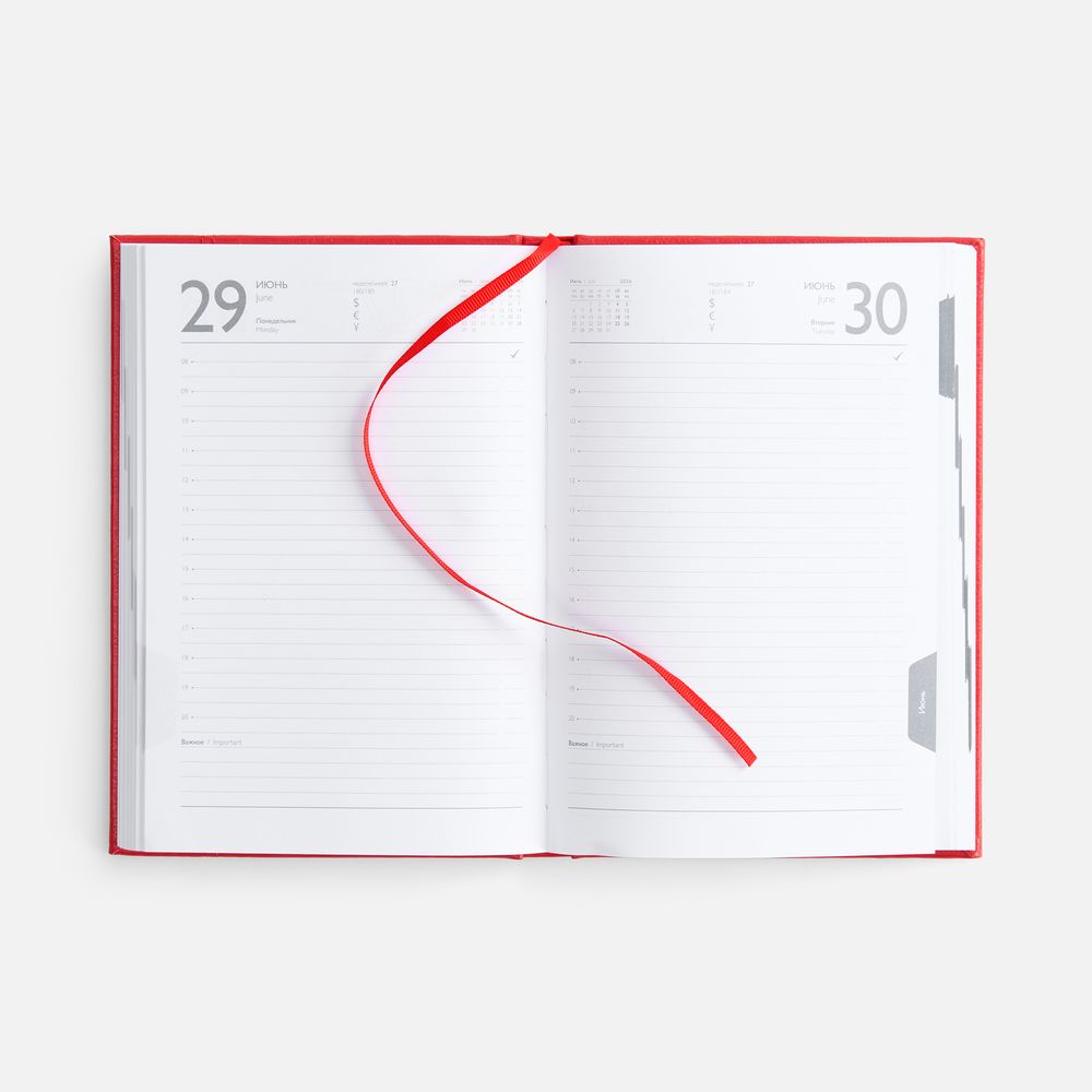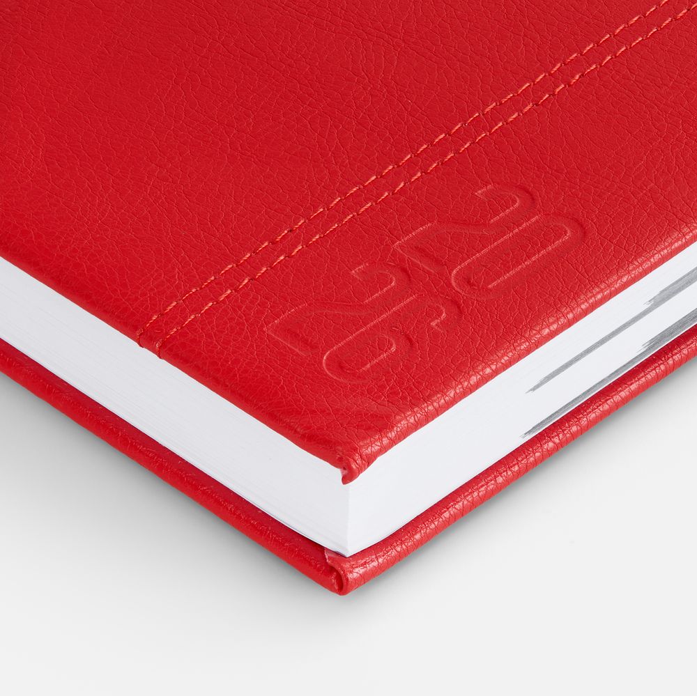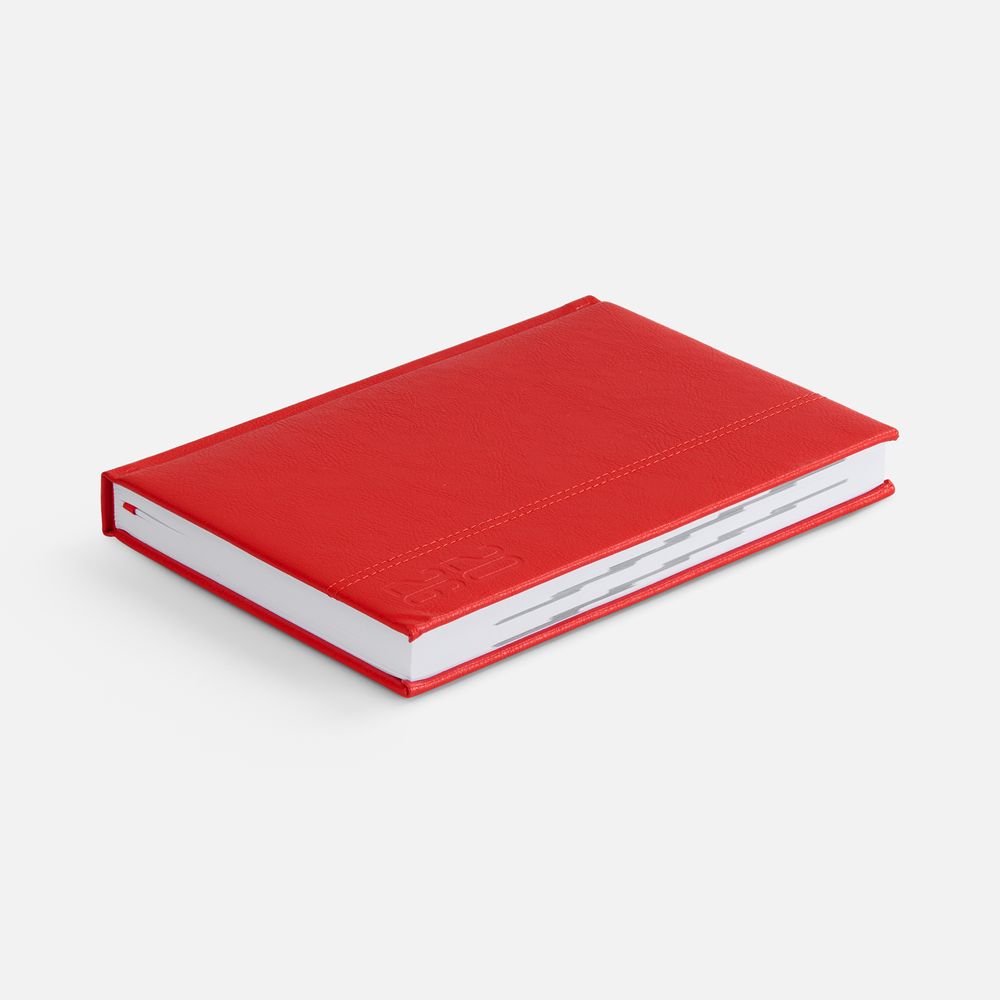 Ежедневник с твердой обложкой с поролоном из искусственной кожи, дополнен декоративной строчкой, капталом и ляссе в цвет ежедневника.