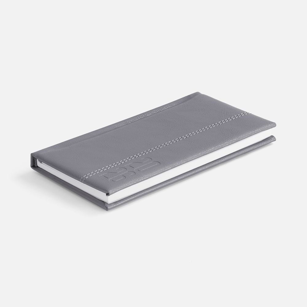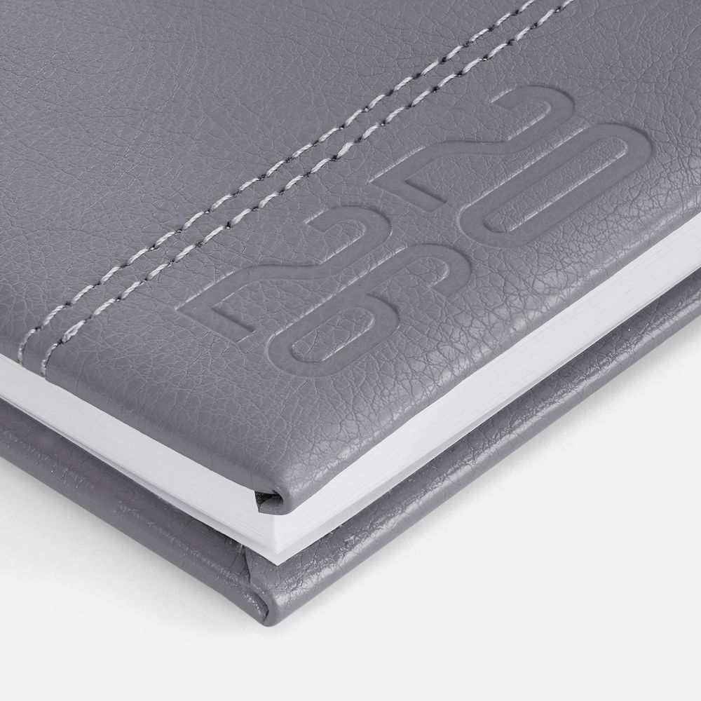 Еженедельник с твердой обложкой с поролоном из искусственной кожи, дополнен декоративной строчкой, капталом и ляссе в цвет.