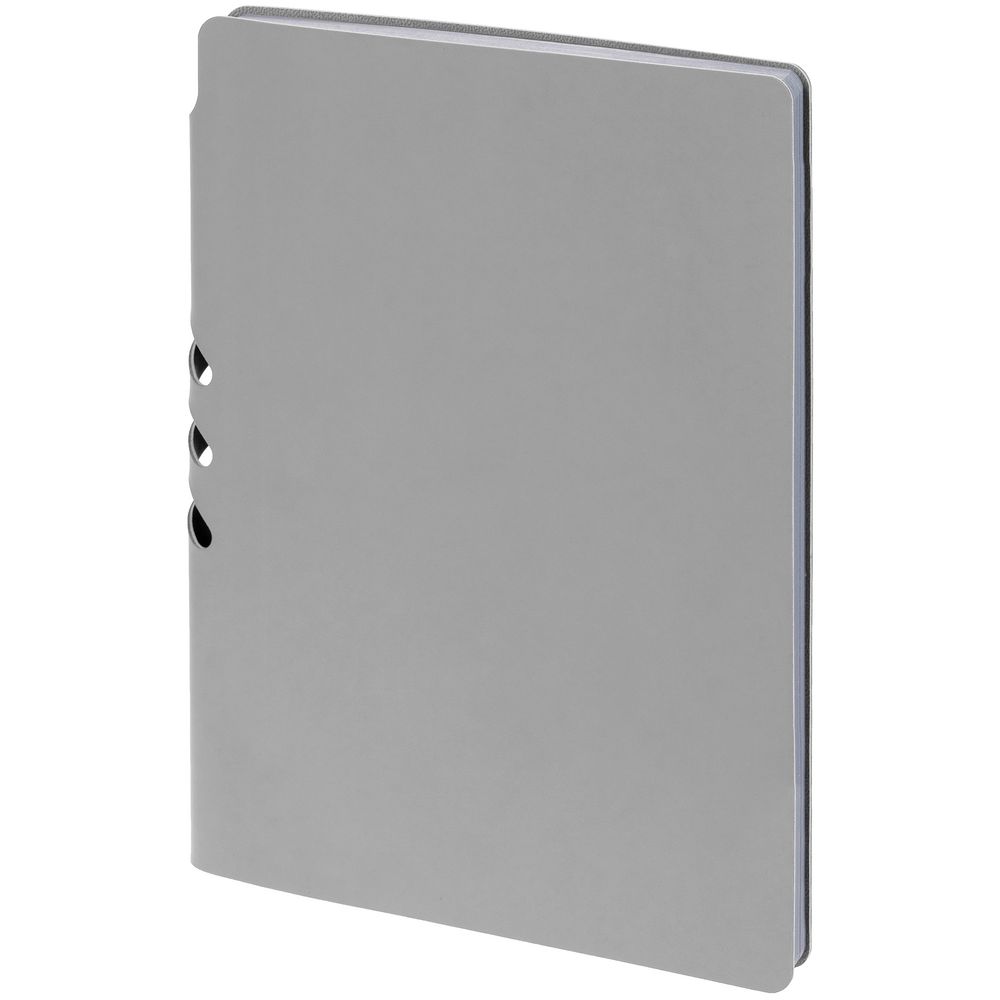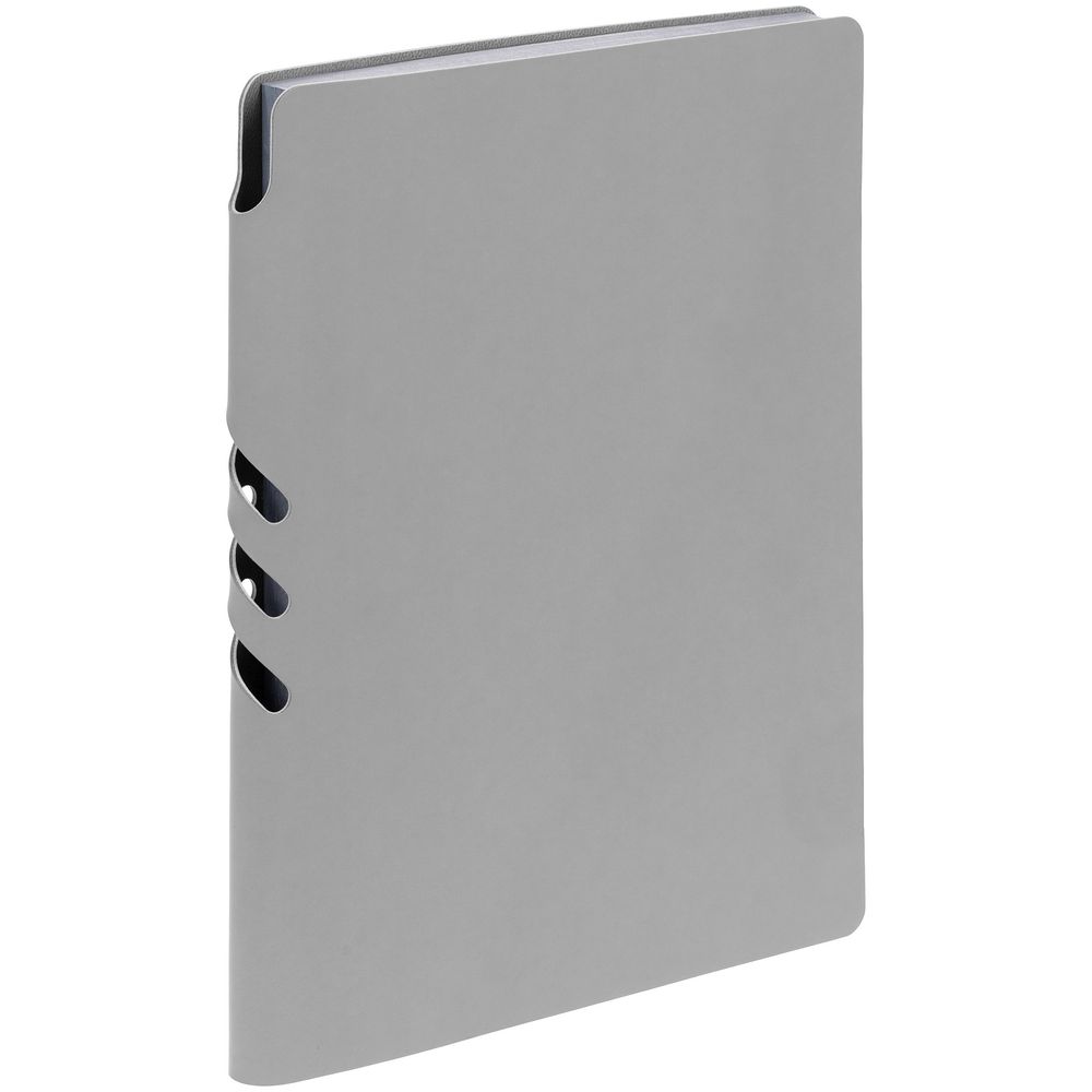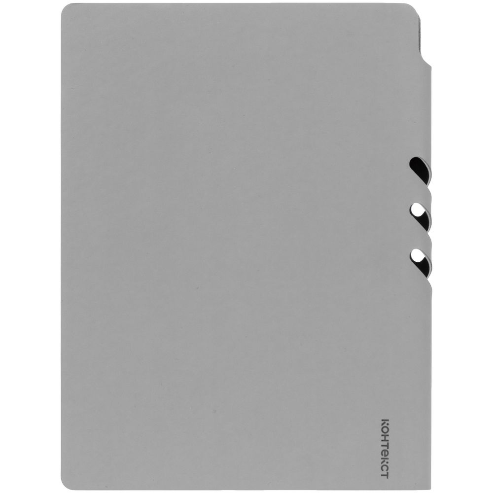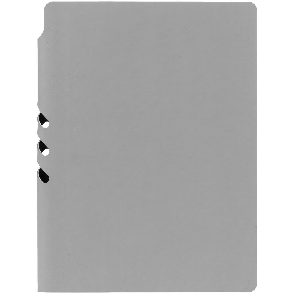 Гибкая обложка выполнена из материала Soft Touch, серый СС и Latte, серый СС (внутренняя часть обложки). Внутри корешка — специальное место для крепления ручки размером до 15х1 см.