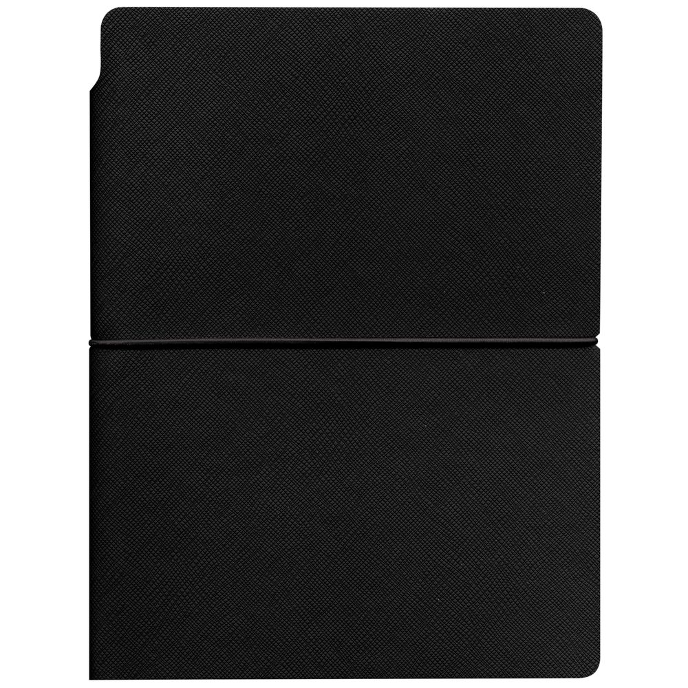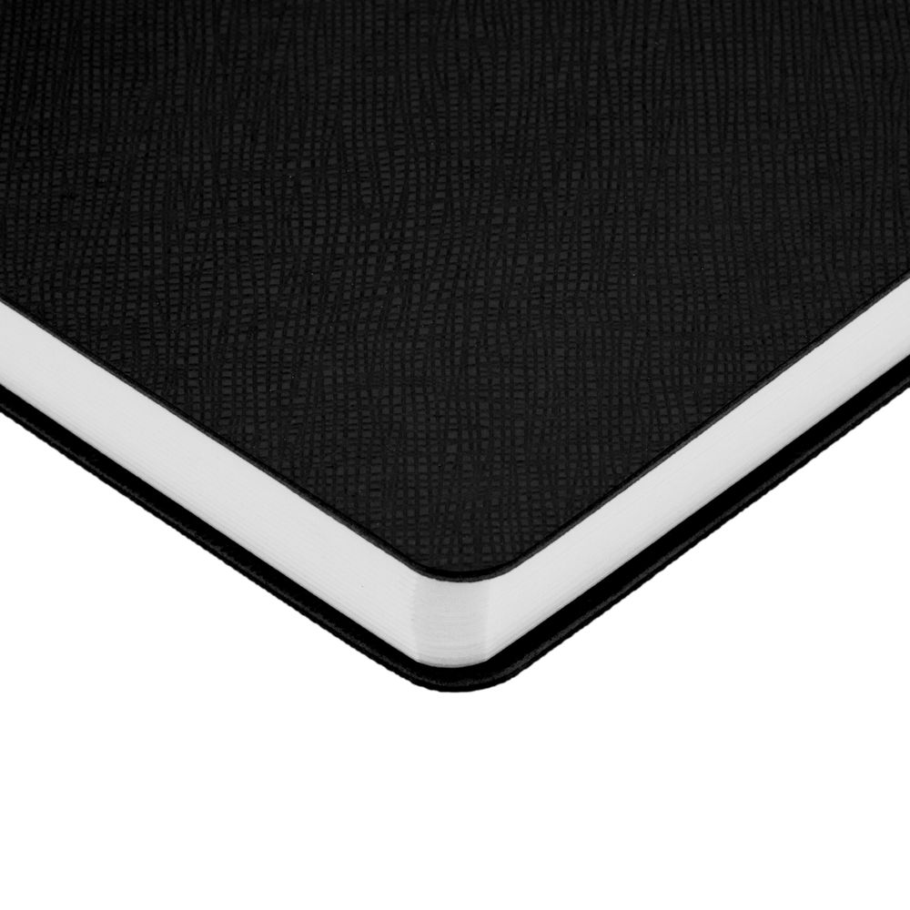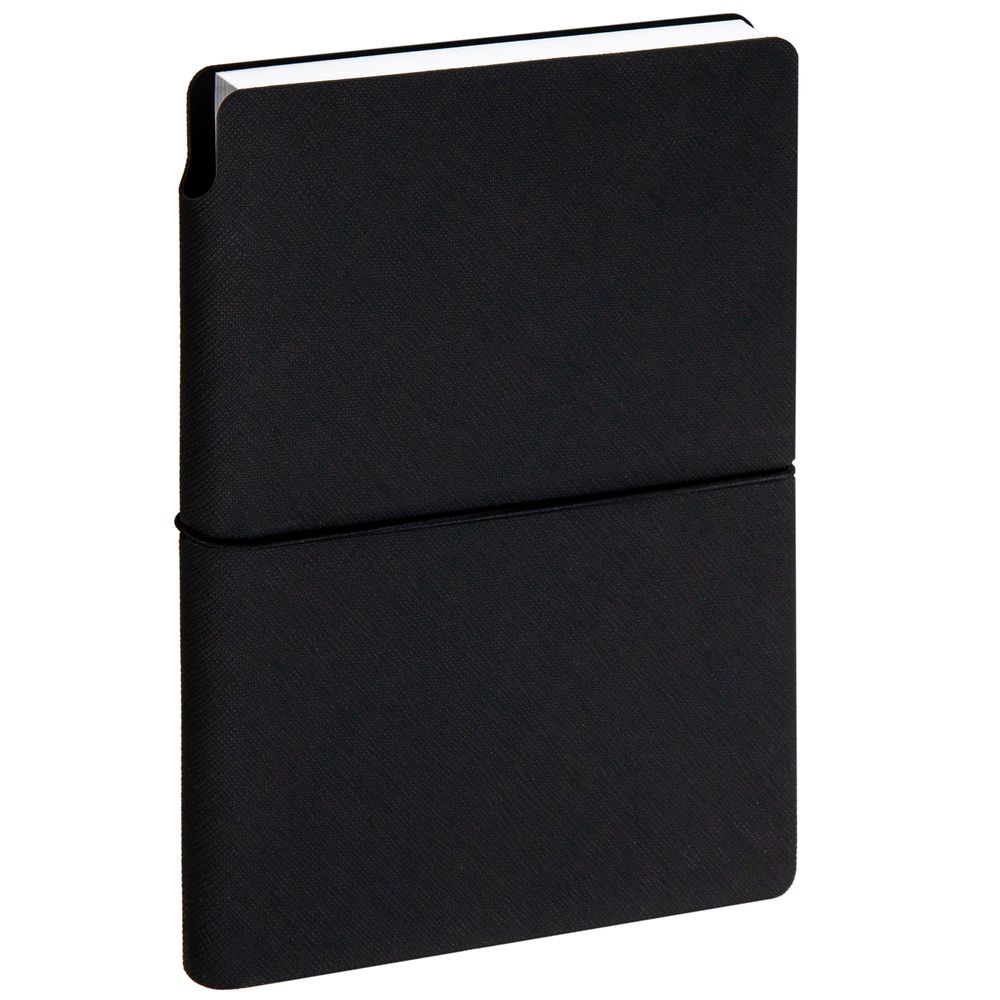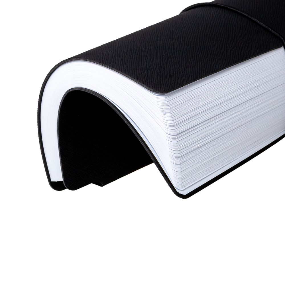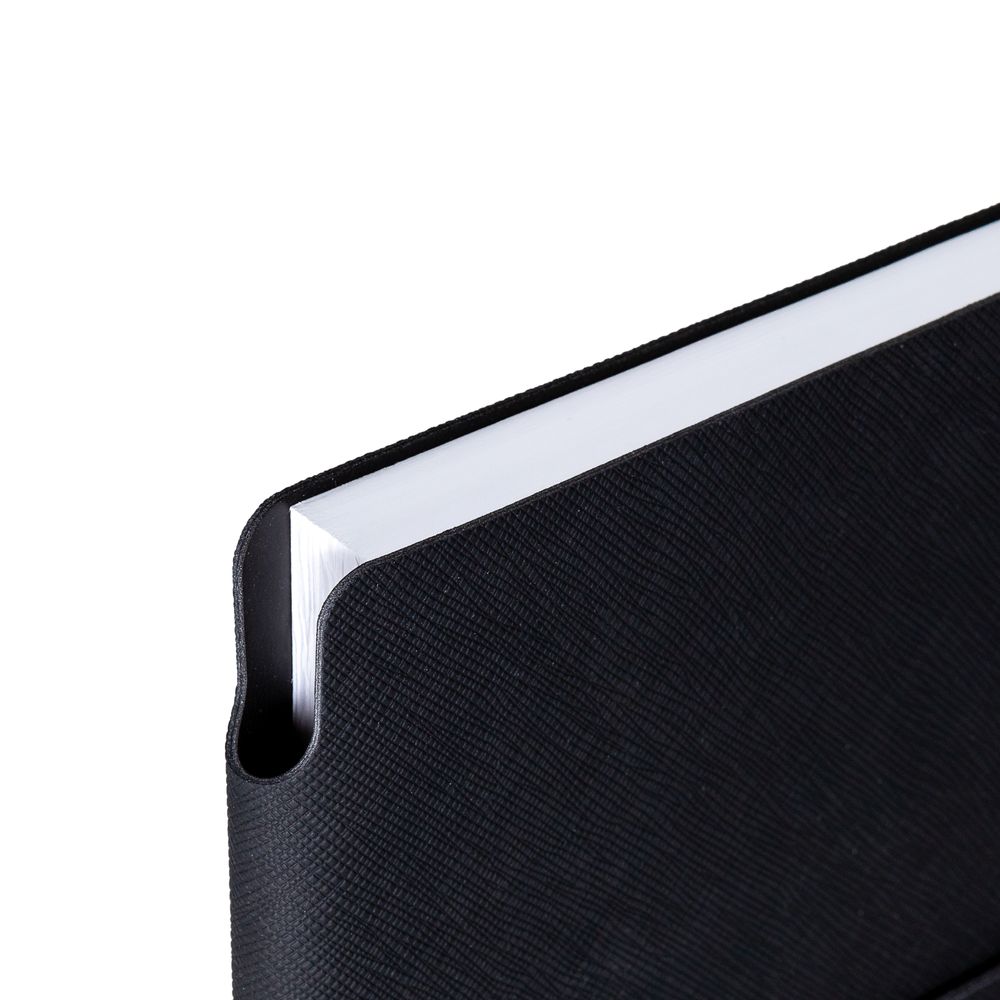 Ежедневник с гибкой обложкой выполнена из материала Nice Touch, черный и Latte, черный (внутренняя часть обложки), дополнен горизонтальной резинкой в цвет обложки. Внутри корешка — специальное место для крепления ручки размером до 15х1 см.