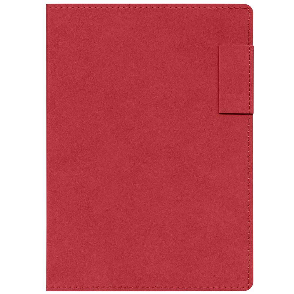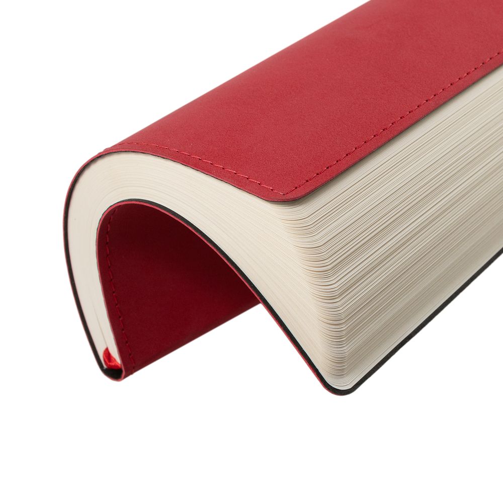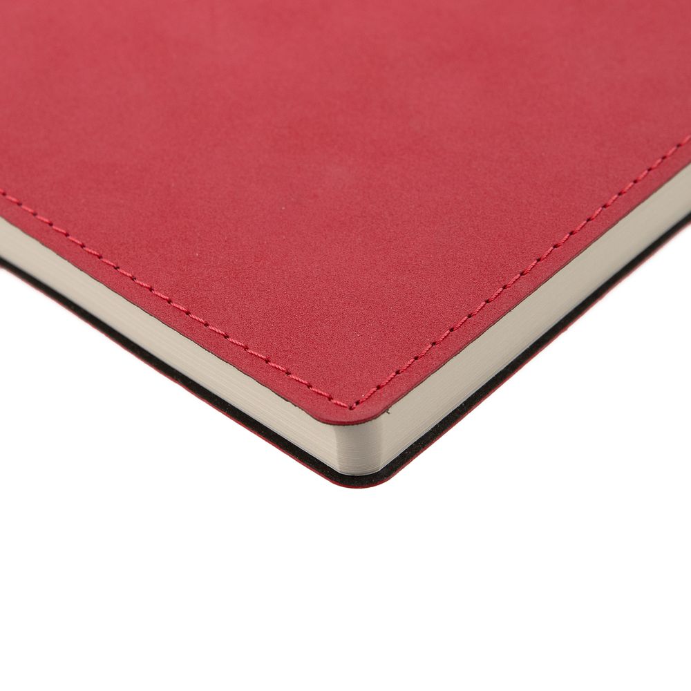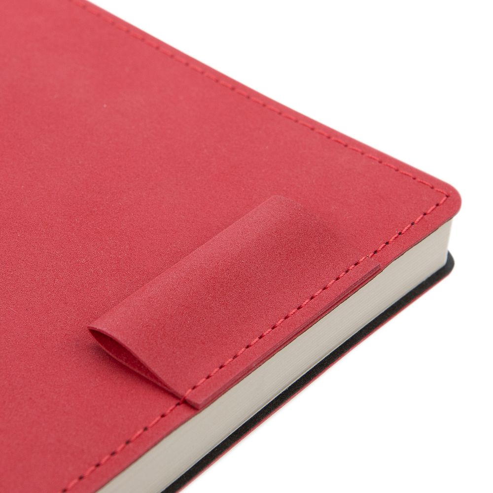 Ежедневник с гибкой обложкой, выполнен из материала Nubuck, красный РР, дополнен петлей-лейблом для ручки и ляссе в цвет материала.