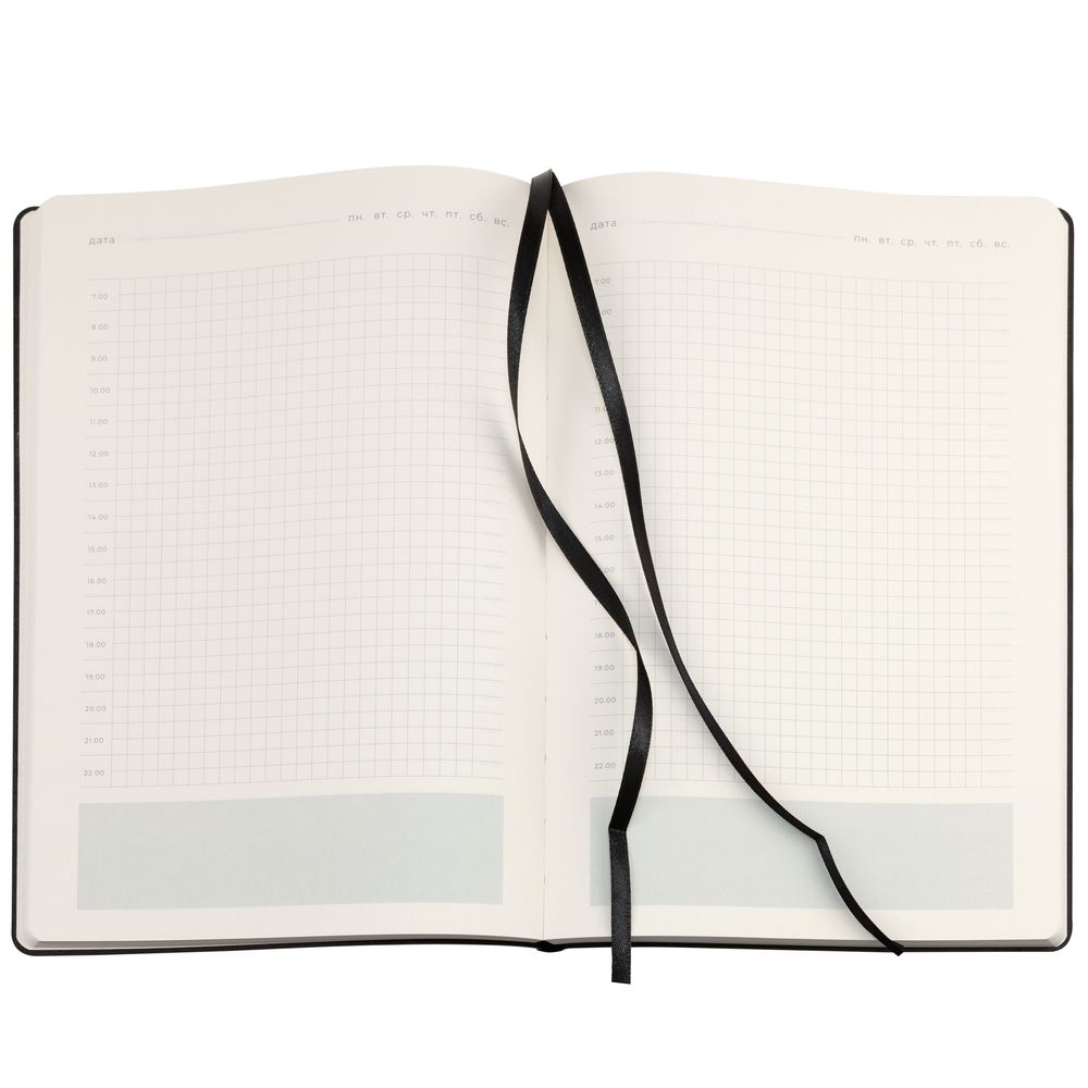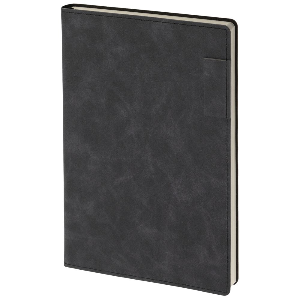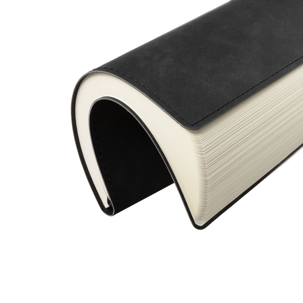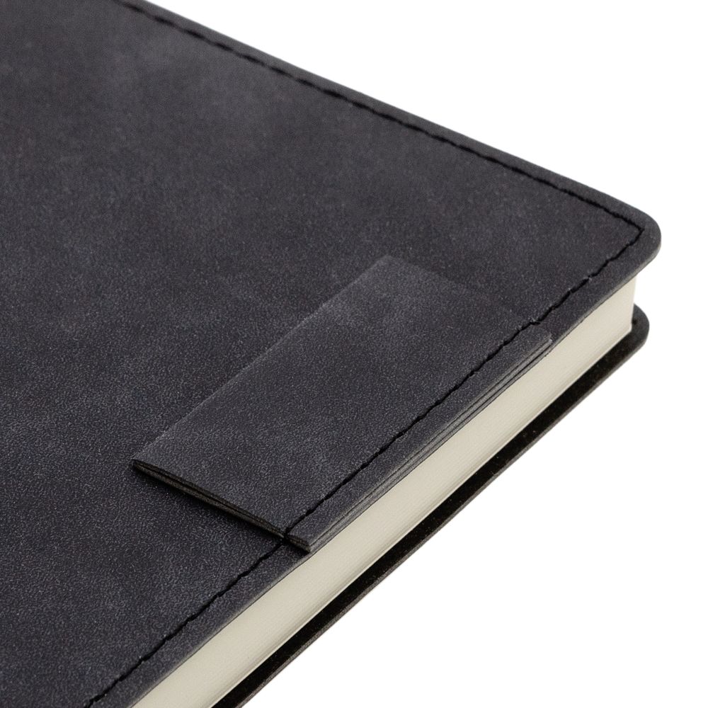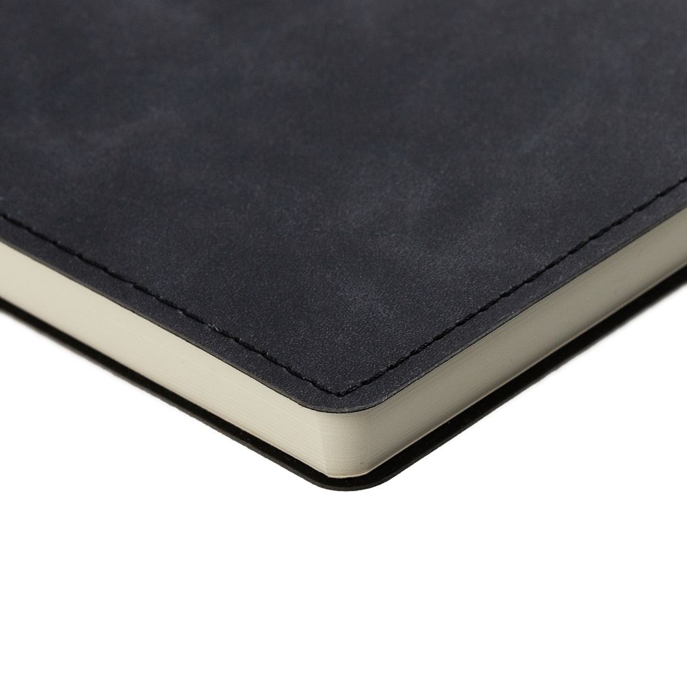 Ежедневник 17х24 см, с гибкой обложкой, выполнен из материала Nubuck Touch, черный АА, дополнен петлей-лейблом для ручки и двойным ляссе в цвет материала.