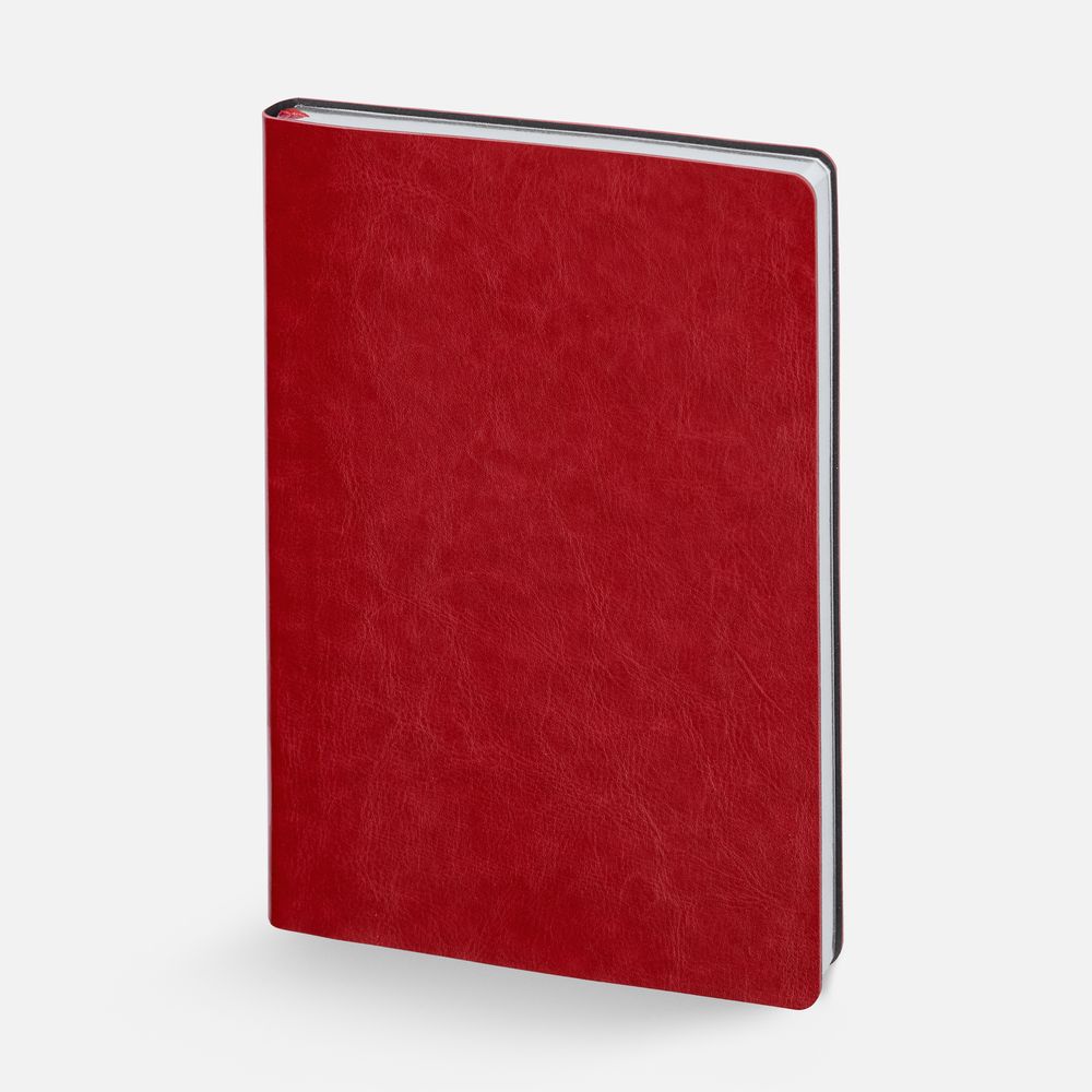 Ежедневник с гибкой обложкой, выполнен из материала Nebraska, красный PP, дополнен ляссе красного цвета.