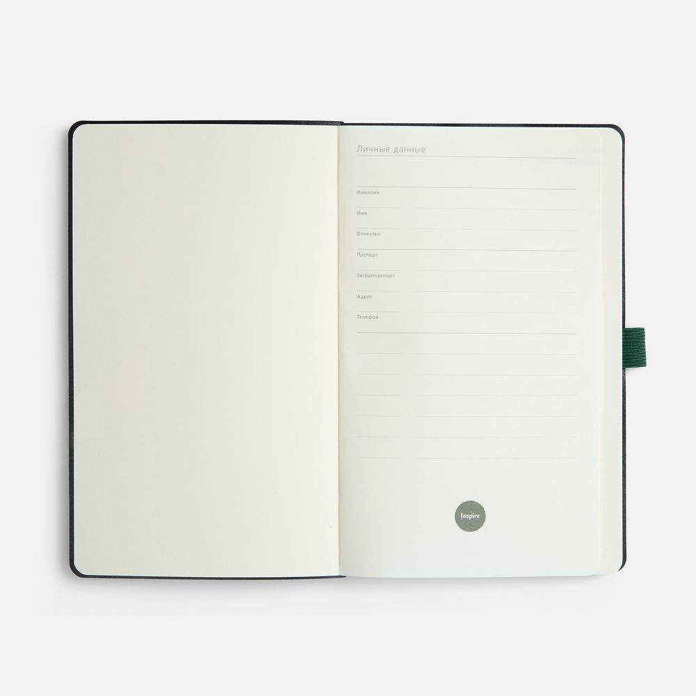 Ежедневник с гибкой обложкой, выполнен из материала Espresso, дополнен цветными ляссе и петлей-резинкой для ручки.