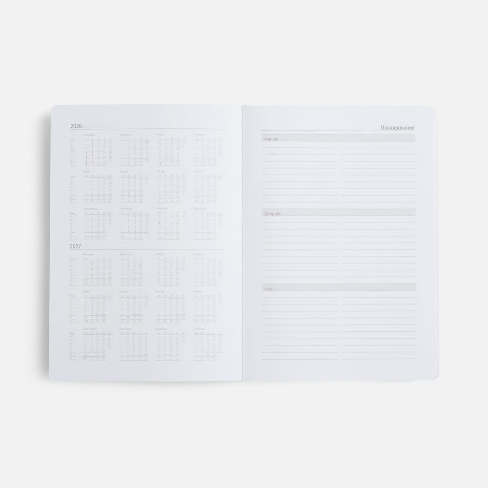 Ежедневник датированный на 2026 год.Ежедневник с твердой обложкой, выполнен из материала Latte, темно-синий XX, дополнен ляссе в цвет обложки.