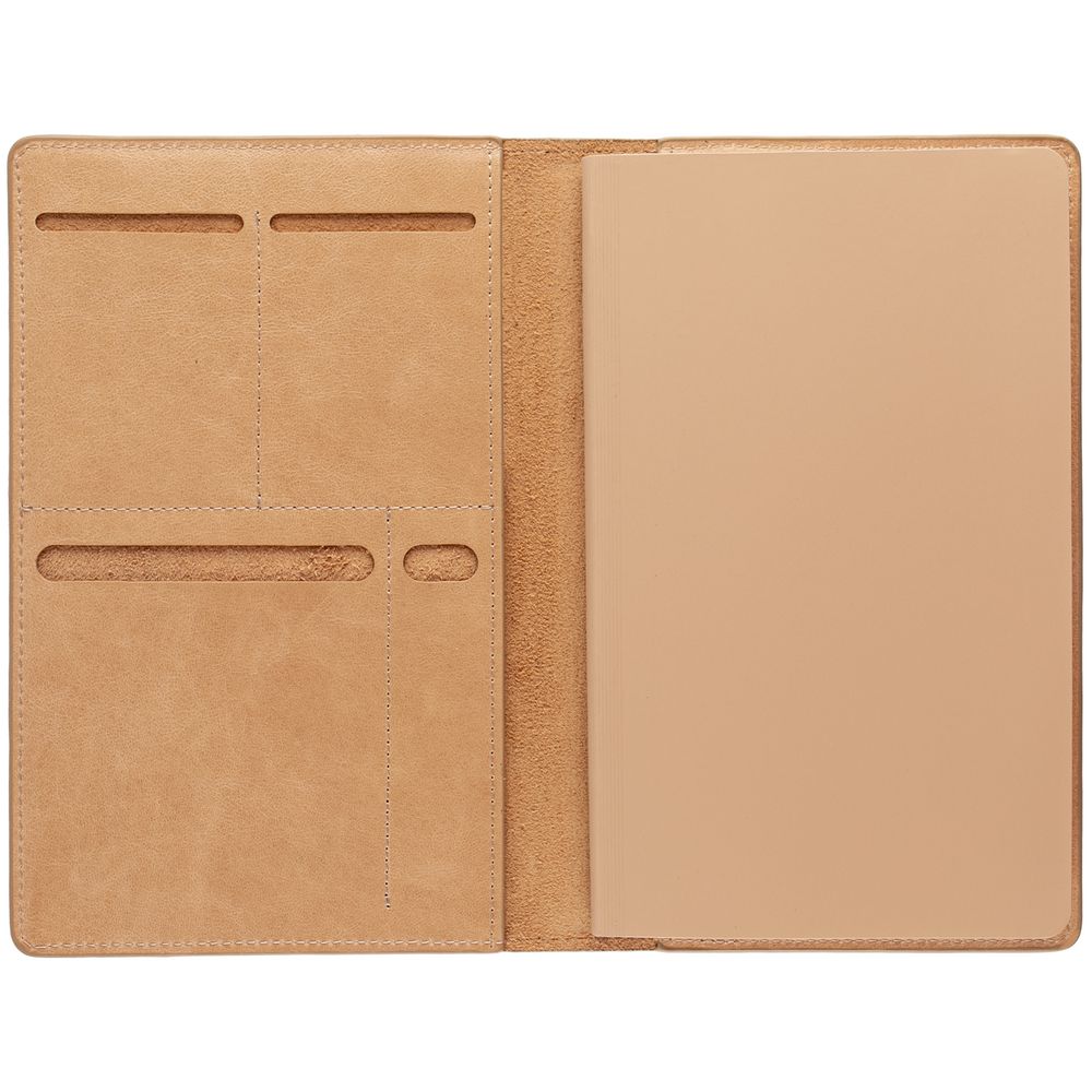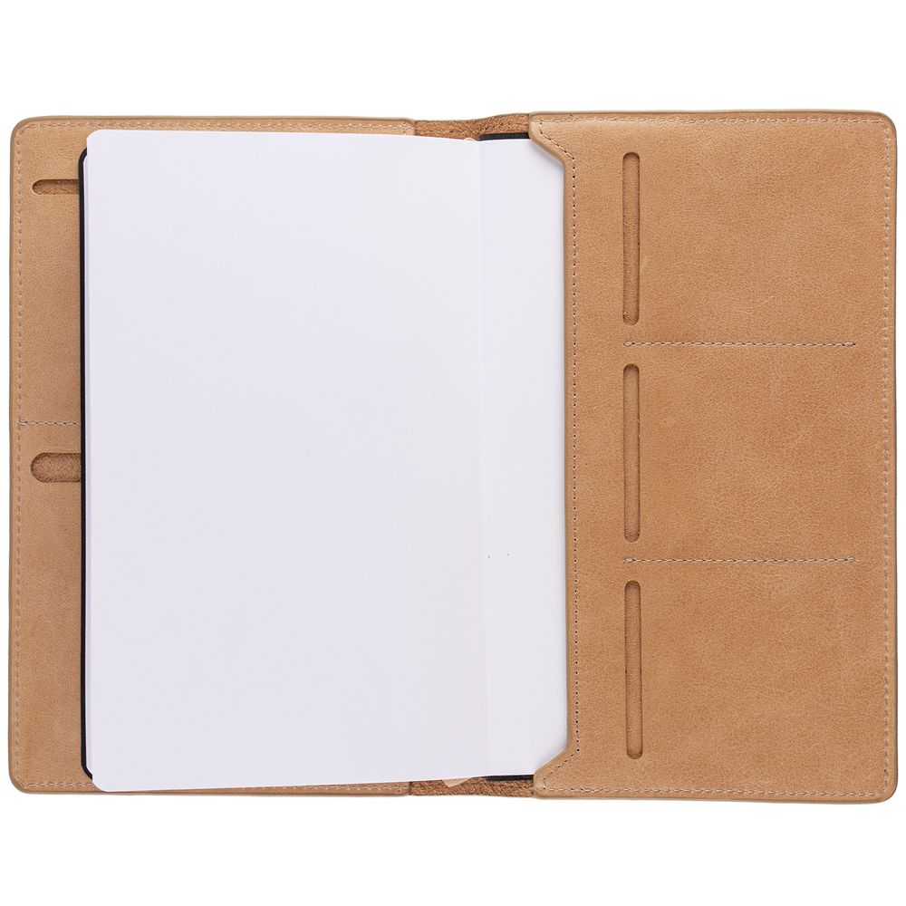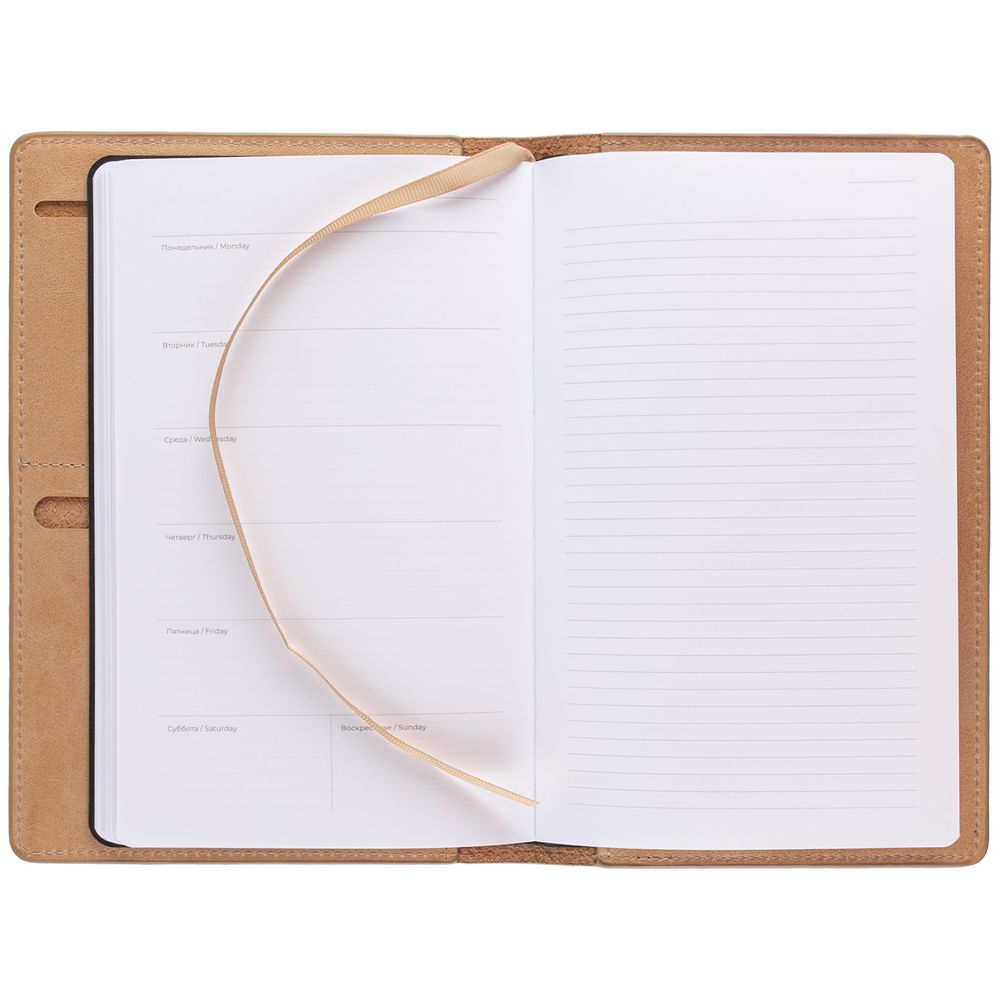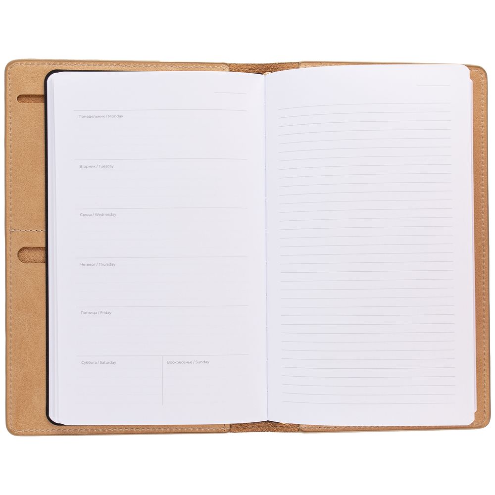 Еженедельник Remini со съемной обложкой-портфолио из натуральной кожи, репсовым ляссе и окрашенным срезом обложки в цвет материала.