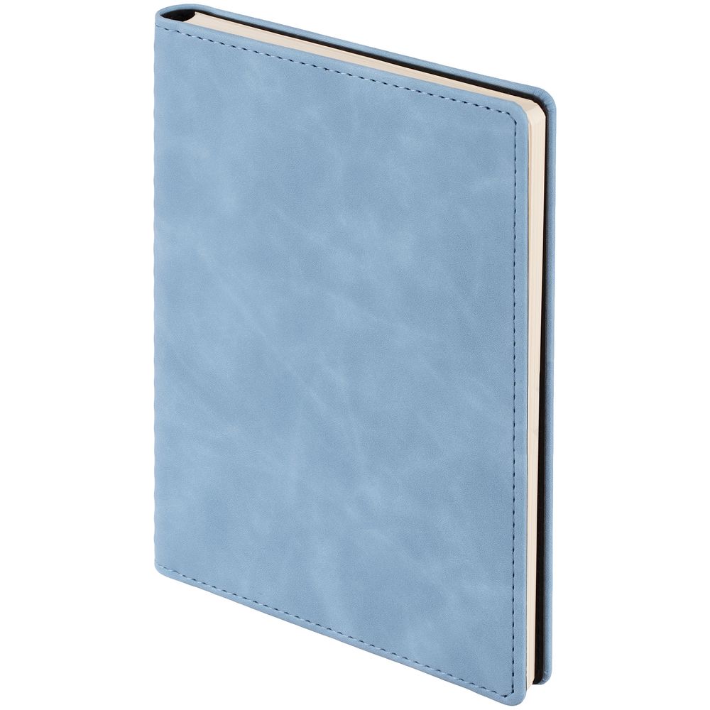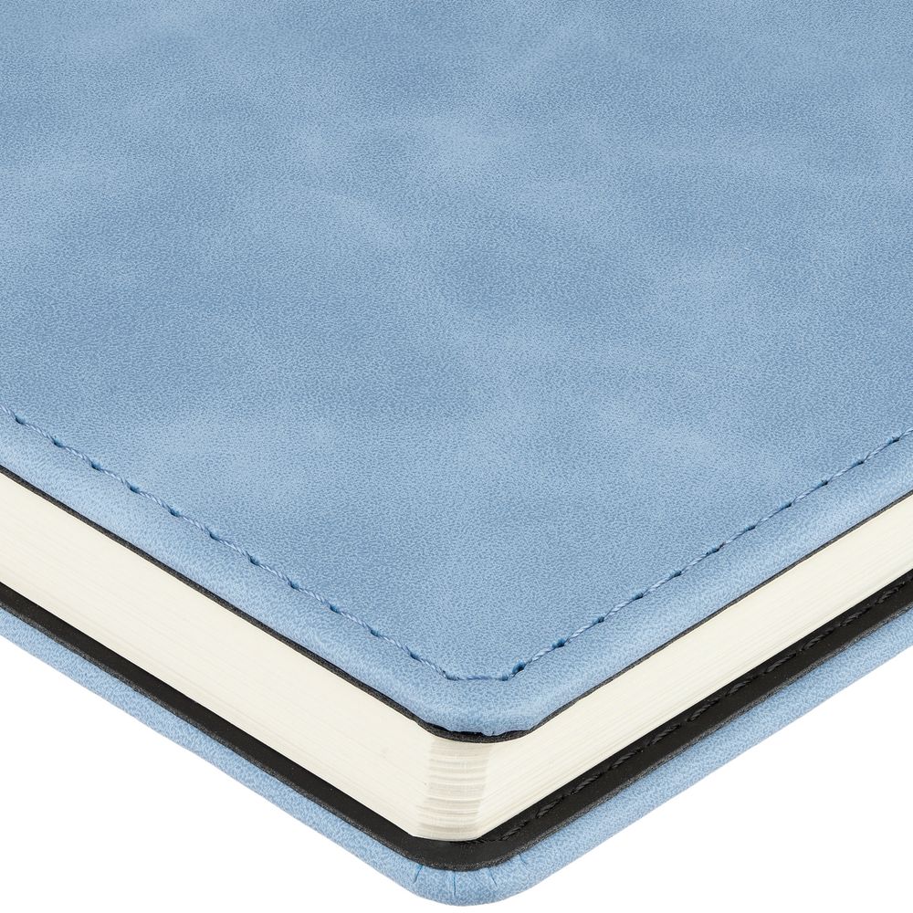 Ежедневник с блоком на пружине в твердой обложке, выполнен из материалов Nubuk Touch, голубой JJ и Soft Touch, черный AA.