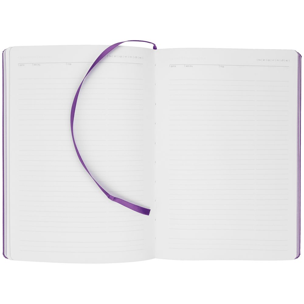 Ежедневник с твердой обложкой. Выполнен из материала Latte, фиолетовый, дополнен ляссе в цвет обложки.
