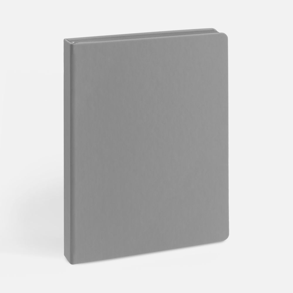Ежедневник с твердой обложкой и тонированным обрезом, выполнен из материала Soft Touch, серый СС, дополнен ляссе в цвет обложки.
