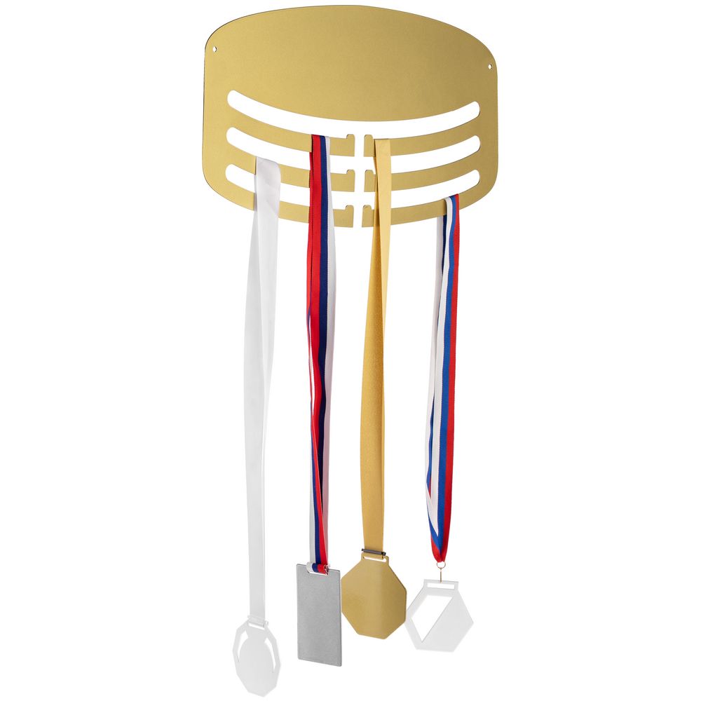 Медальницу можно непосредственно закрепить на стене или продеть шнурок и подвесить. Крепеж и шнурок в комплект не входят.