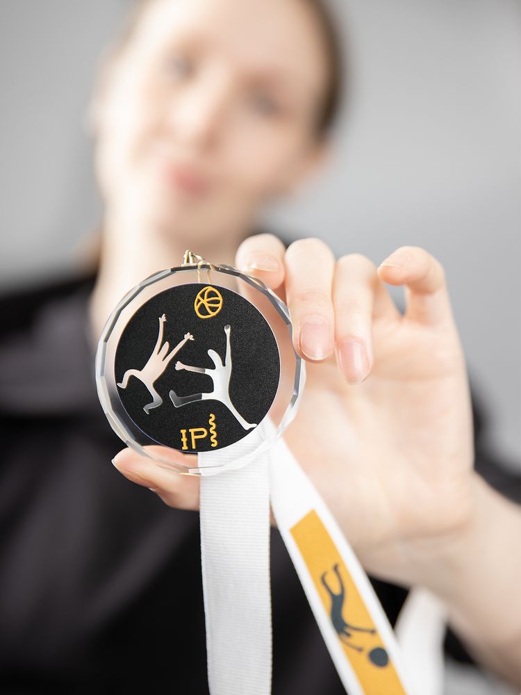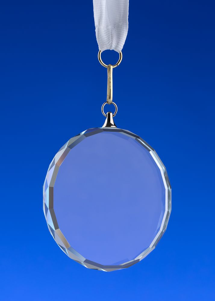 Медаль изготовлена из стекла К9, в основе которого лежит оптическое боросиликатное стекло. Эту марку стекла отличает низкий процент посторонних включений, высокий показатель преломления и высокая прозрачность — идеальные качества для изготовления наград премиального уровня.