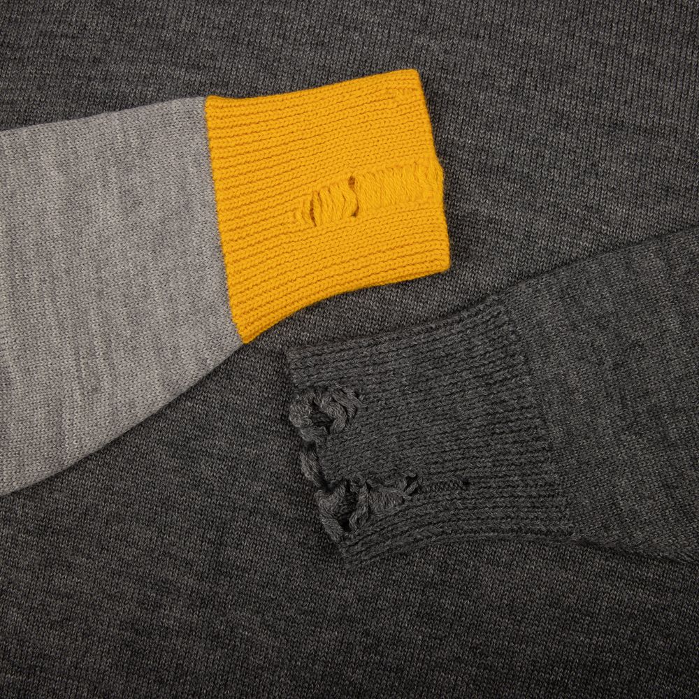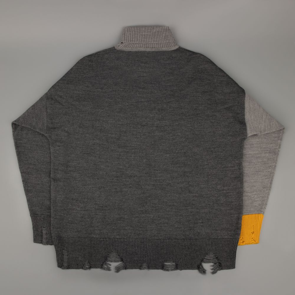 Свитер унисекс с вывязанным логотипом и индивидуальным рисунком в фирменной цветовой гамме.