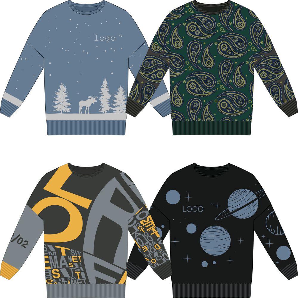 Свитер унисекс с вывязанным логотипом и индивидуальным рисунком в фирменной цветовой гамме.