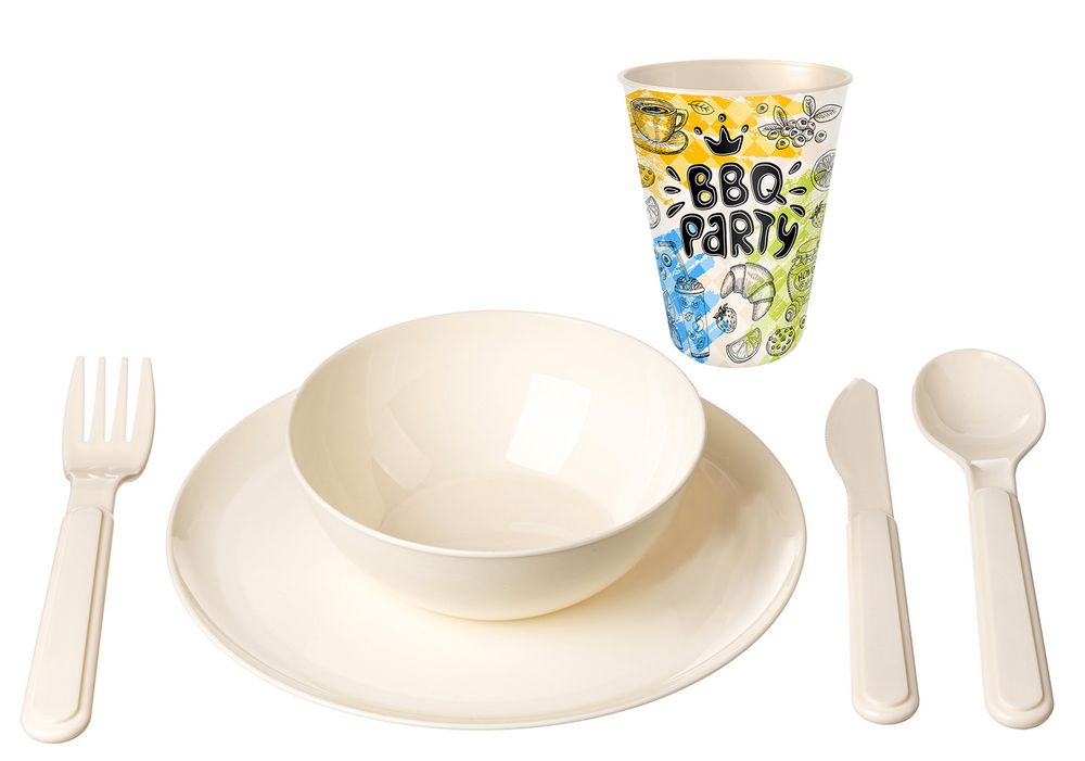 Набор Picnic на 6 персон позволит удобно устроиться на природе и насладиться пикником с классической сервировкой. Посуда упакована в удобный для переноски контейнер с ручкой, который раскрывается на 180° и превращается в двухсекционную миску для подачи. Столовые приборы скрепляются друг с другом с помощью фиксатора и не потеряются в процессе транспортировки.