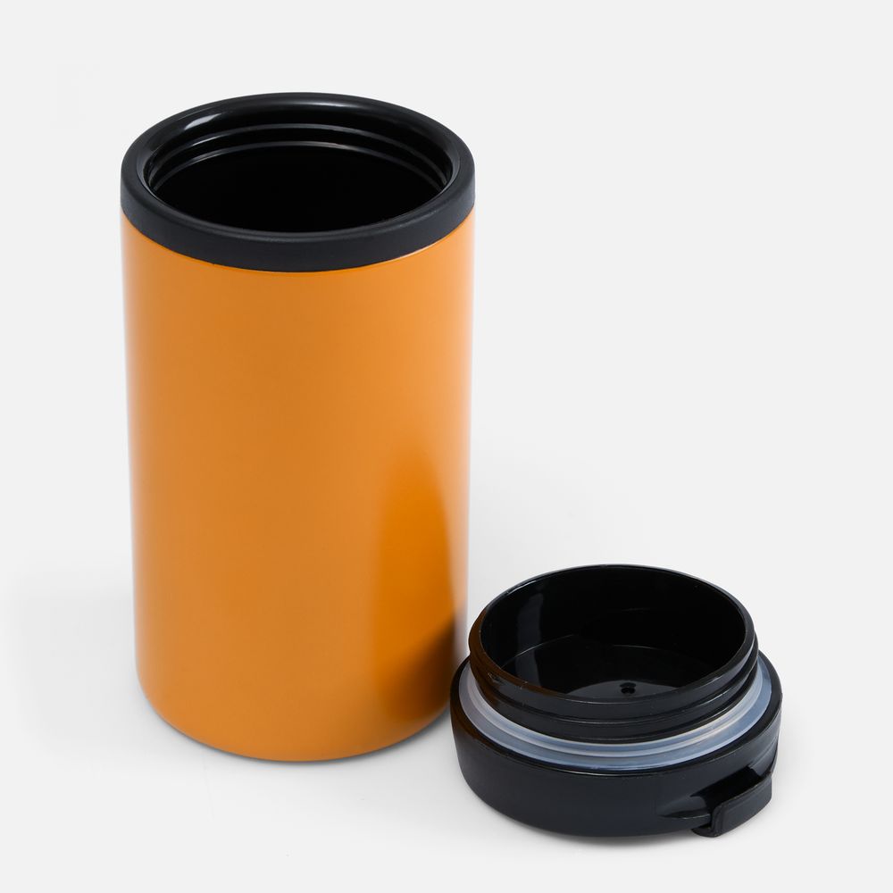 Двухслойная конструкция из пищевого пластика внутри и нержавеющей стали снаружи. Герметичная завинчивающаяся крышка с откидным клапаном для питья.