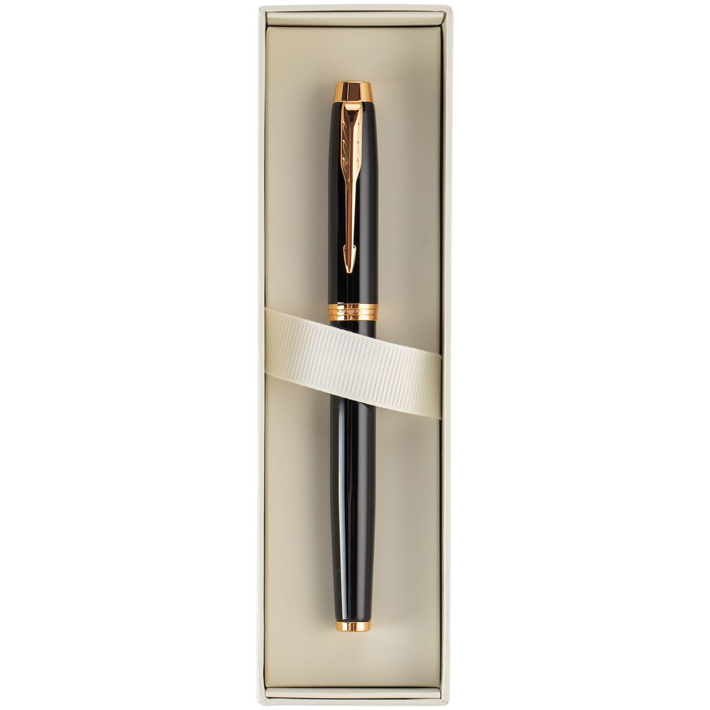 Перьевая ручка в корпусе, покрытом черным глянцевым лаком. Позолоченная отделка деталей с полировкой.