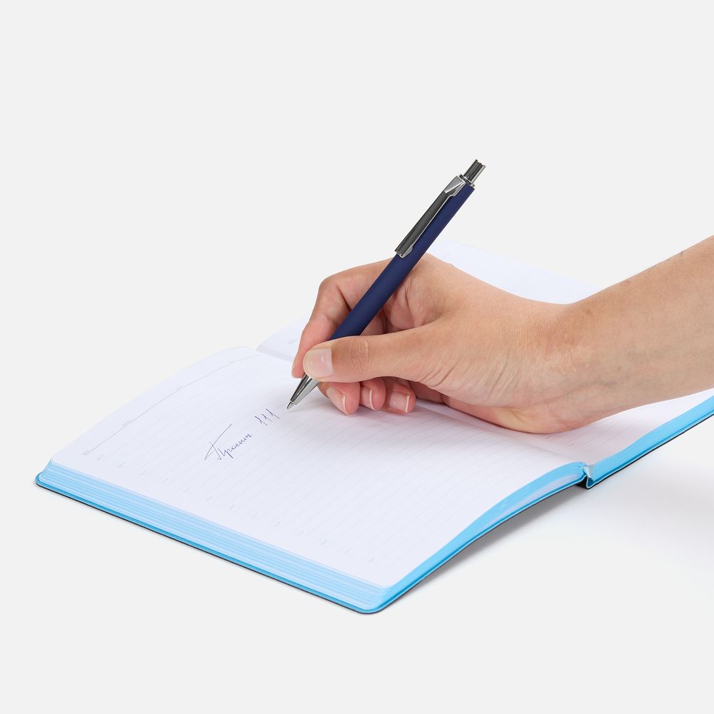 Шариковая ручка с покрытием софт-тач и хромированными деталями. Клип оригинальной формы.
