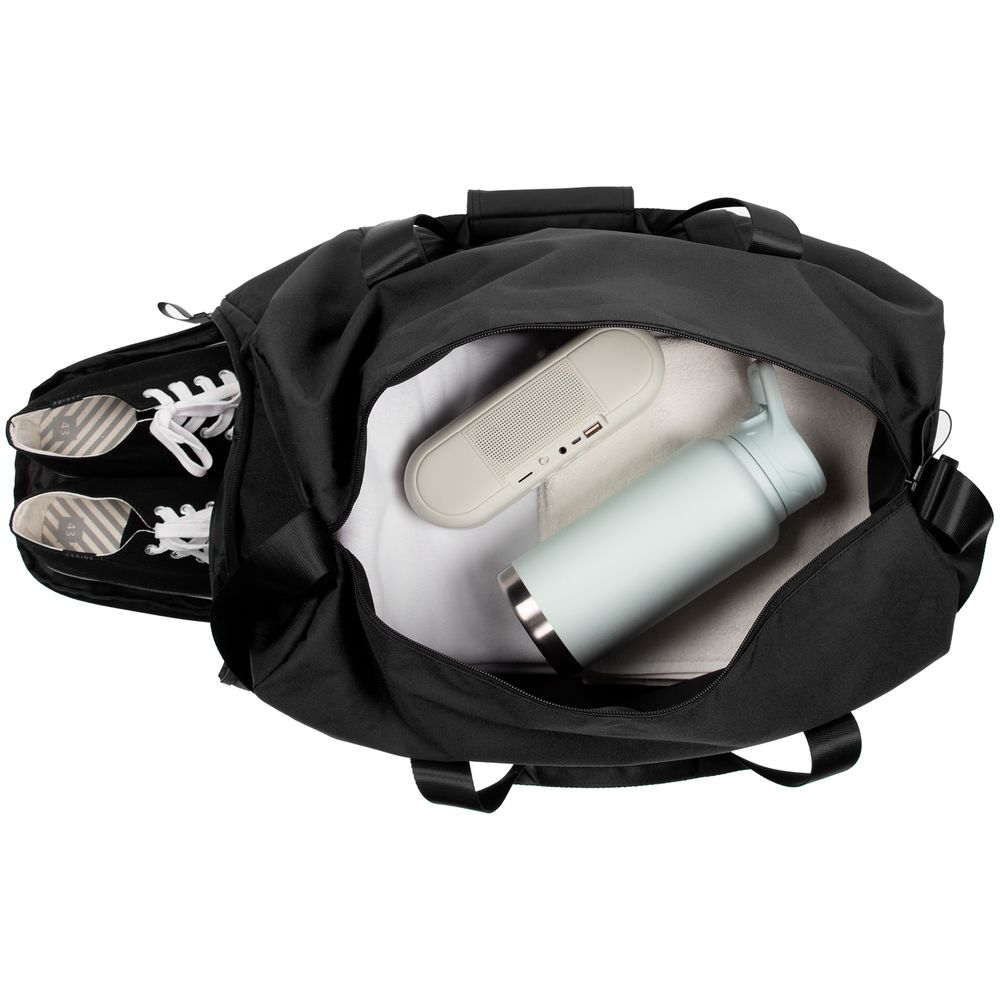 Легкая и стильная, вместительная и удобная, с карманами внутри и снаружи — сумка будет верным спутником в путешествии или командировке, а также в спортзале.