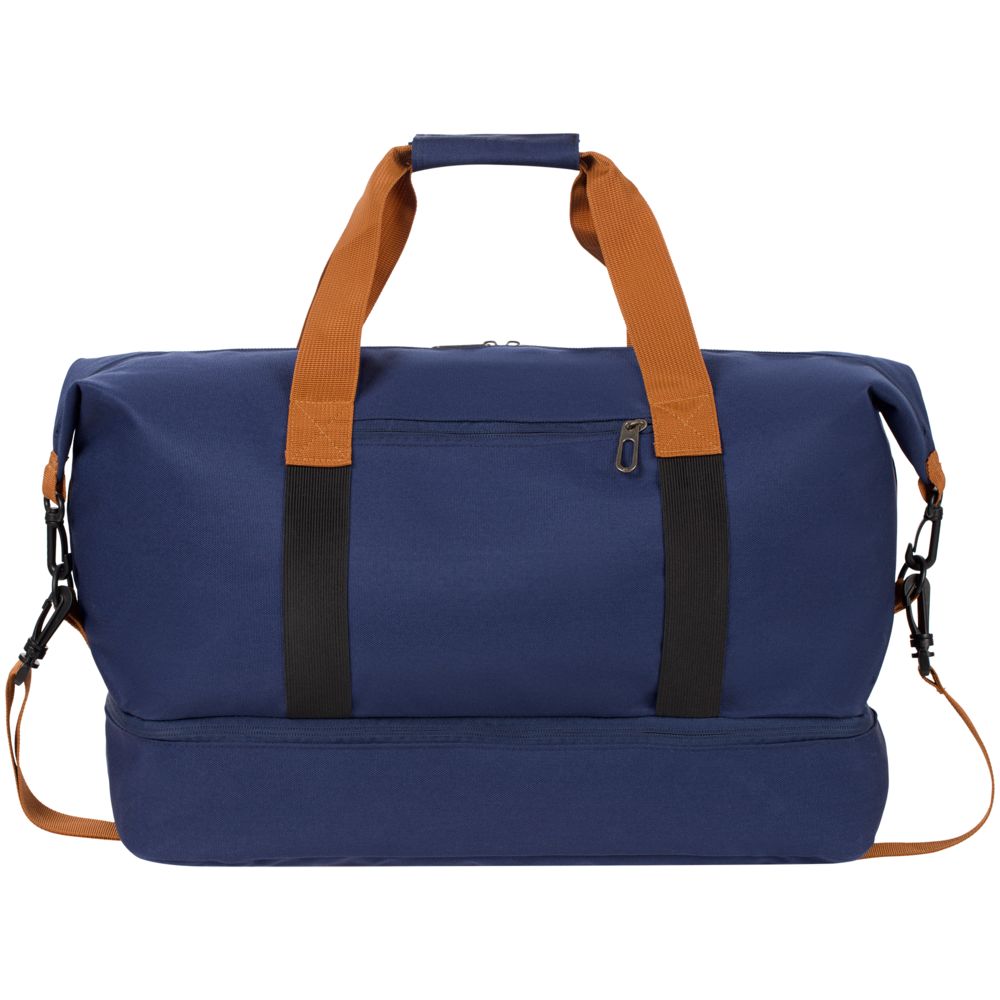 Дорожная сумка Incluso — надежный спутник в краткосрочной поездке, будь то командировка или выезд на уикенд. Также она с легкостью станет незаменима для спортзала. Изготовлена из прочного материала, оснащена удобными ручками и регулируемым плечевым ремнем, что обеспечивает комфорт при переноске. В сумке предусмотрено специальное отделение для обуви.