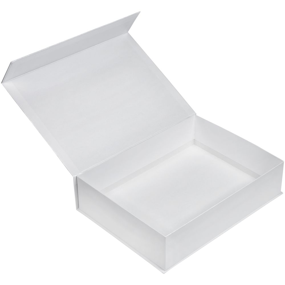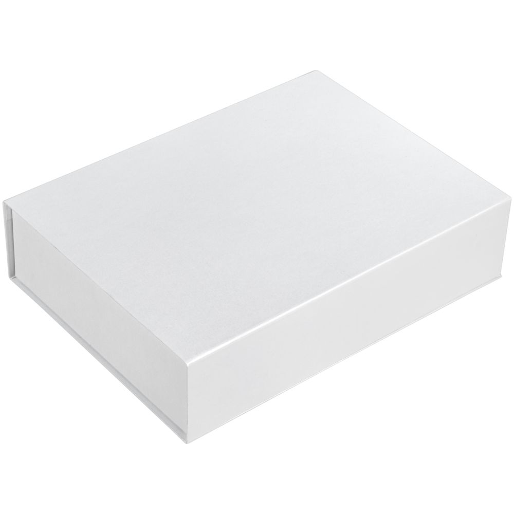 Коробка изготовлена из переплетного картона, кашированного дизайнерской бумагой Majestic цвета «Белый мрамор». Крышка на магните. Конструкция коробки предусматривает наличие технологического зазора шириной до 2 мм по линии сопряжения короба и крышки.