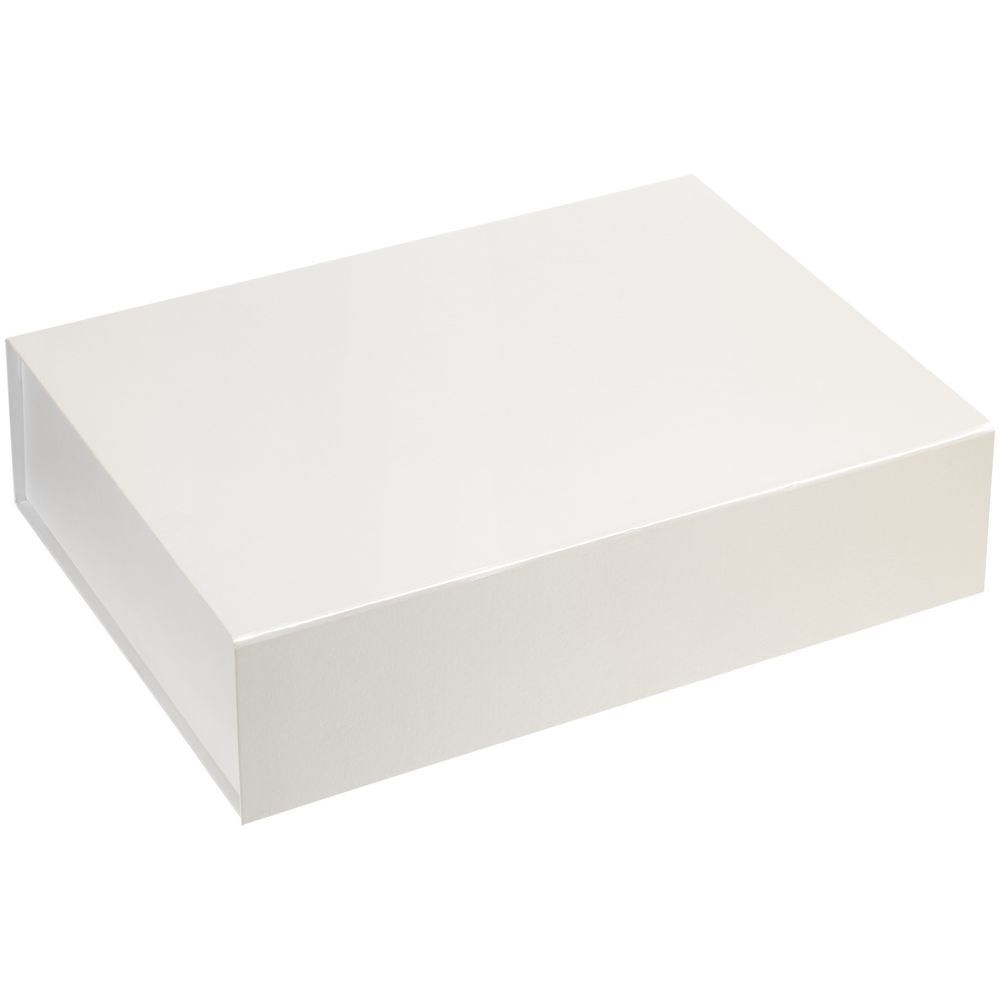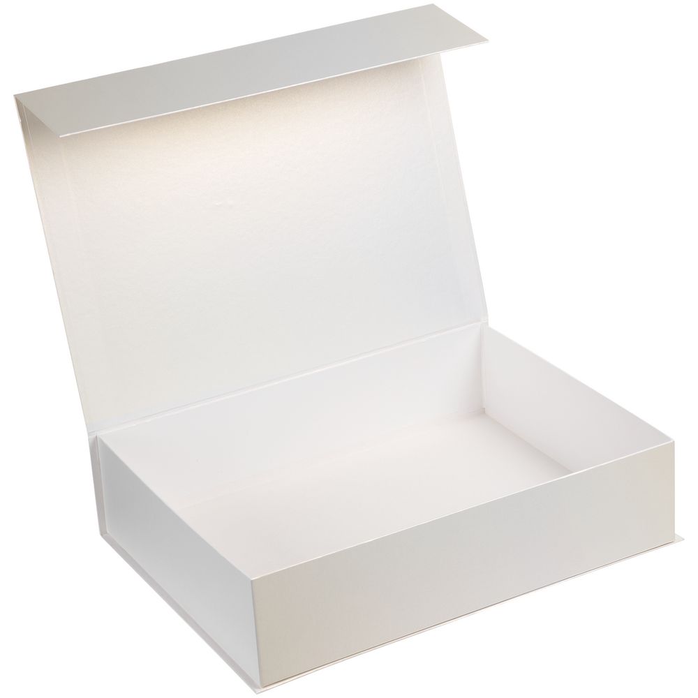Коробка выполнена из переплетного картона, кашированного гладкой дизайнерской бумагой Majestic цвета «Золотой свет», с крышкой на магнитах. Конструкция коробки предусматривает наличие технологического зазора шириной до 2 мм по линии сопряжения короба и крышки.